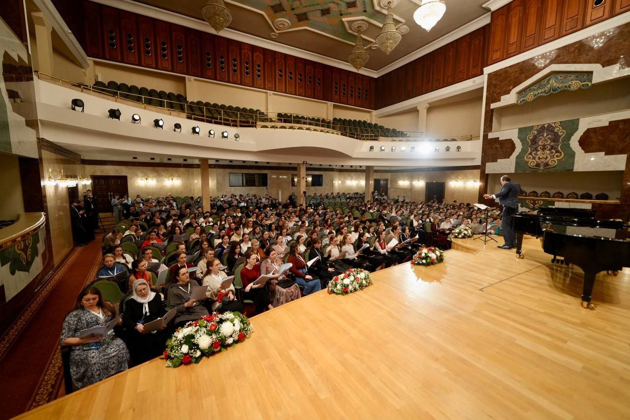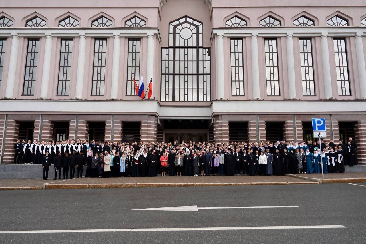 Всероссийский хоровой фестиваль для регентских отделений духовных учебных заведений проходит в Казани с 30 апреля по 4 мая по благословению Святейшего Патриарха Московского и всея Руси Кирилла и при поддержке Президентского фонда культурных инициатив, Учебного комитета Русской Православной Церкви и Раиса Республики Татарстан Рустама Минниханова.