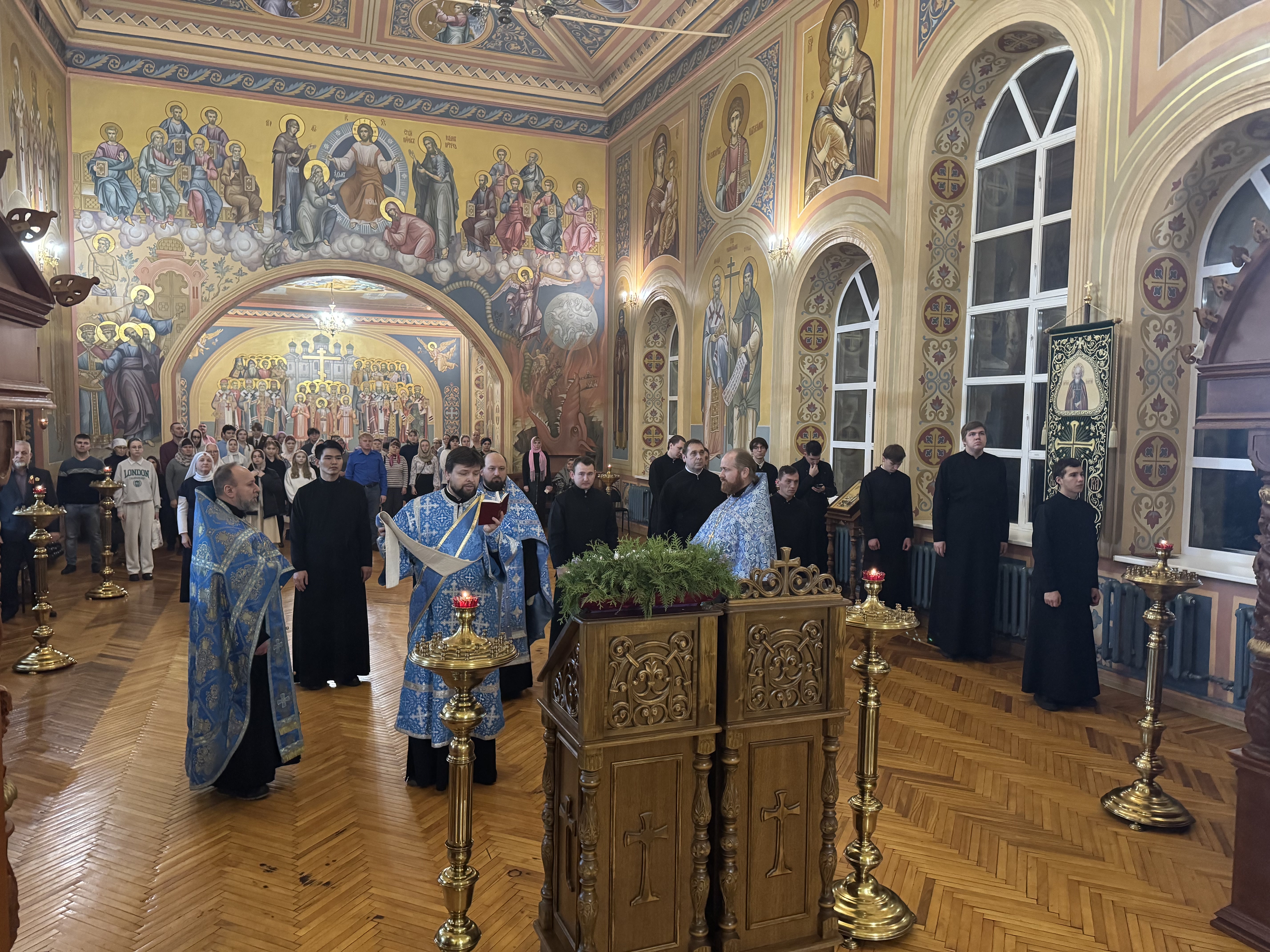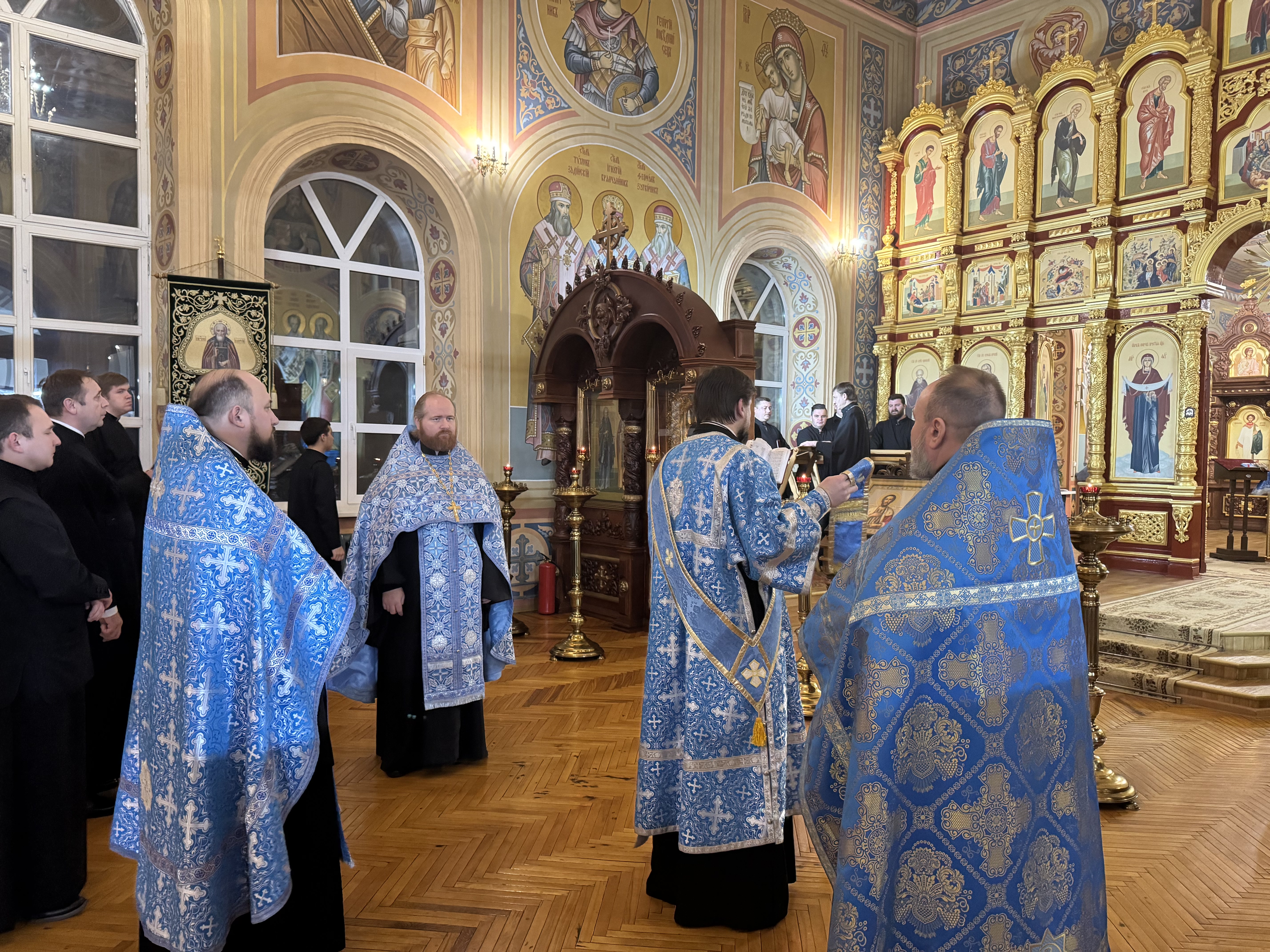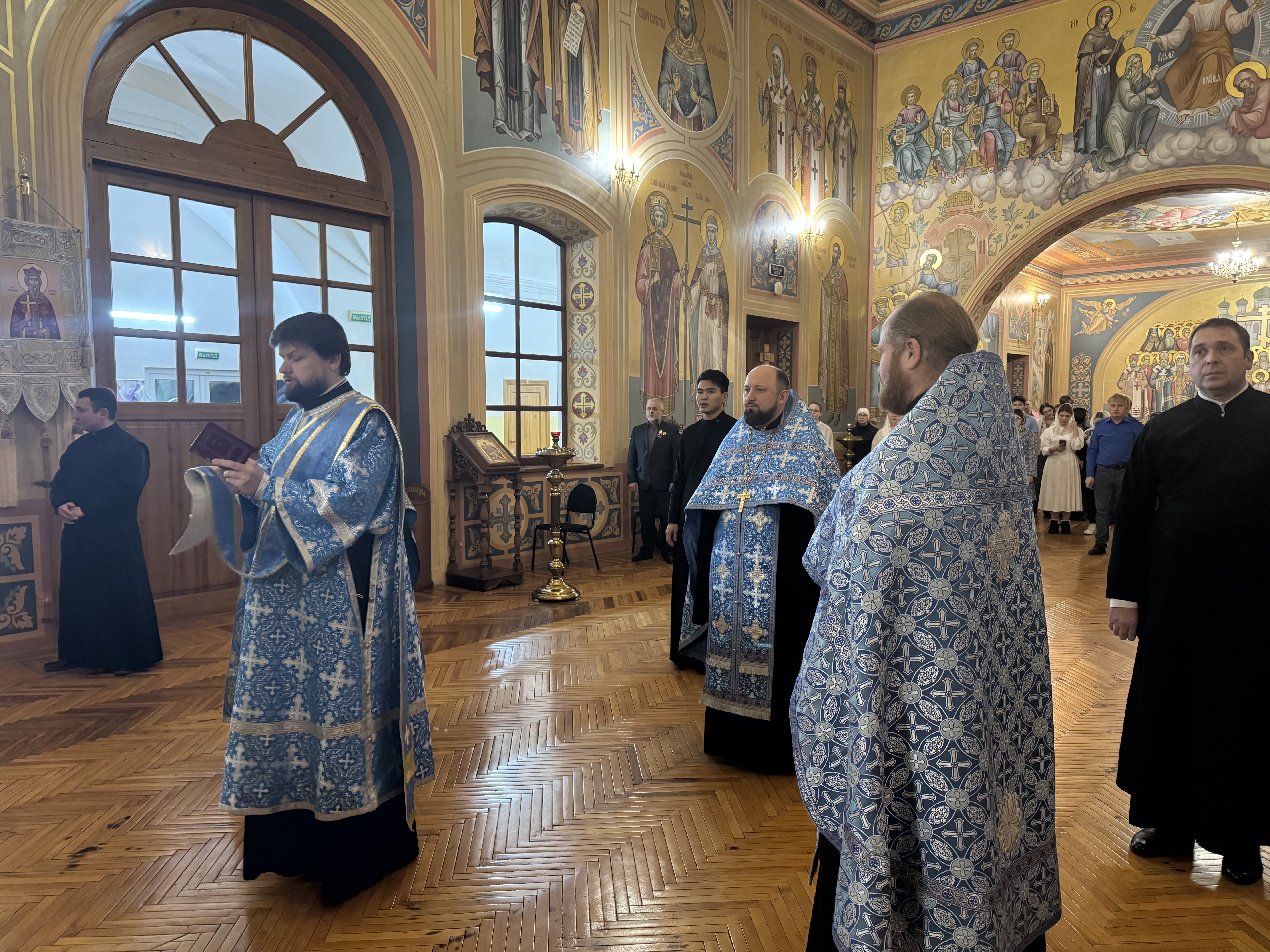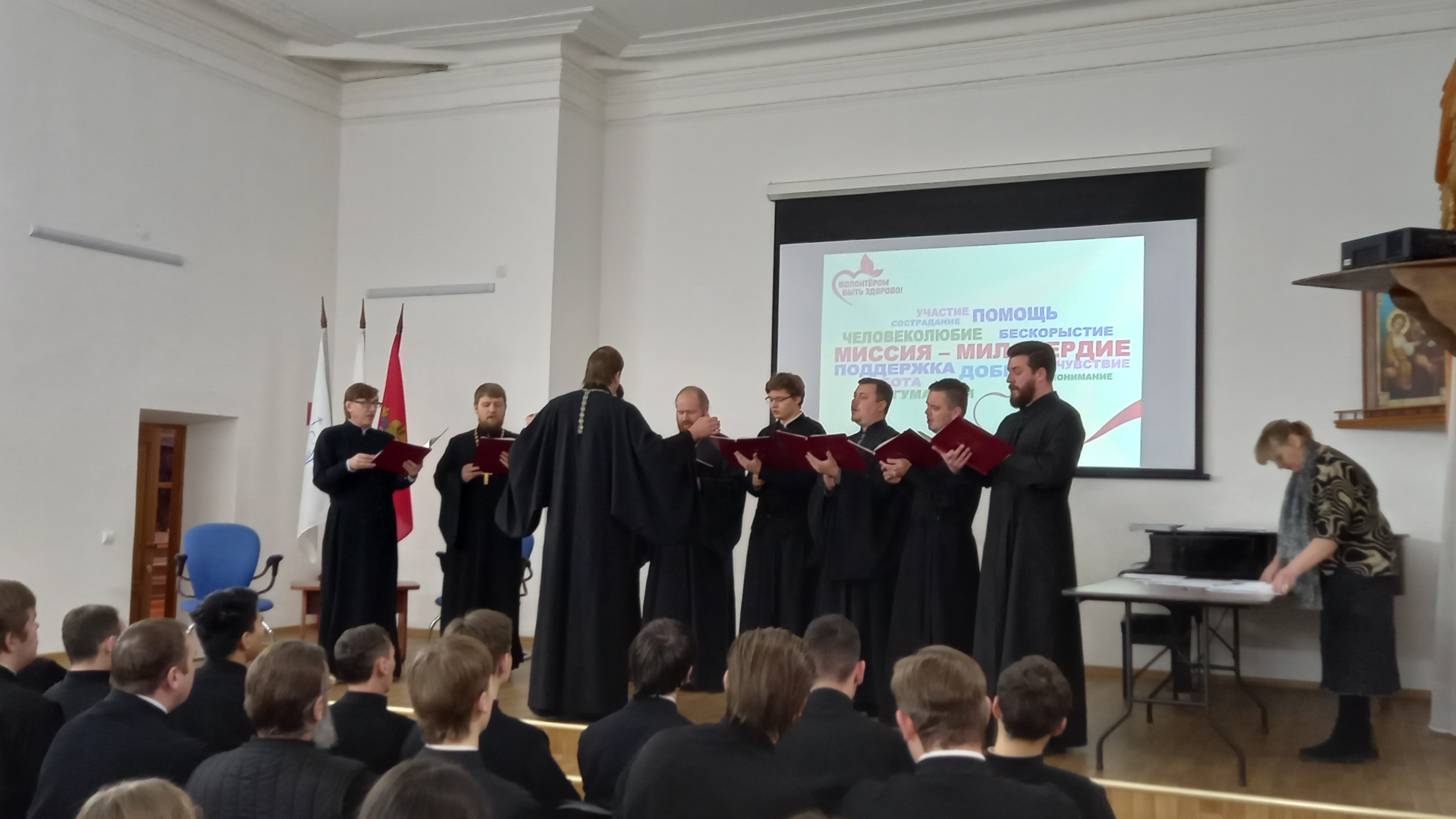 Перед торжественной частью в домовом храме в честь трех святителей Оренбургской духовной семинарии был совершен благодарственный молебен, который возглавил ректор семинарии иерей Петр Панов в сослужении председателя епархиального отдела по церковной благотворительности и социальному служению протоиерей Вадим Сороколетов, проректор по учебной работе иерей Алексий Колыванов и помощник проректора по воспитательной работе диакон Виктор Довмат. Песнопения молебного пения исполнил мужской хор ОренДС под управлением заведующего регентским отделением иерея Александра Ромашкова.