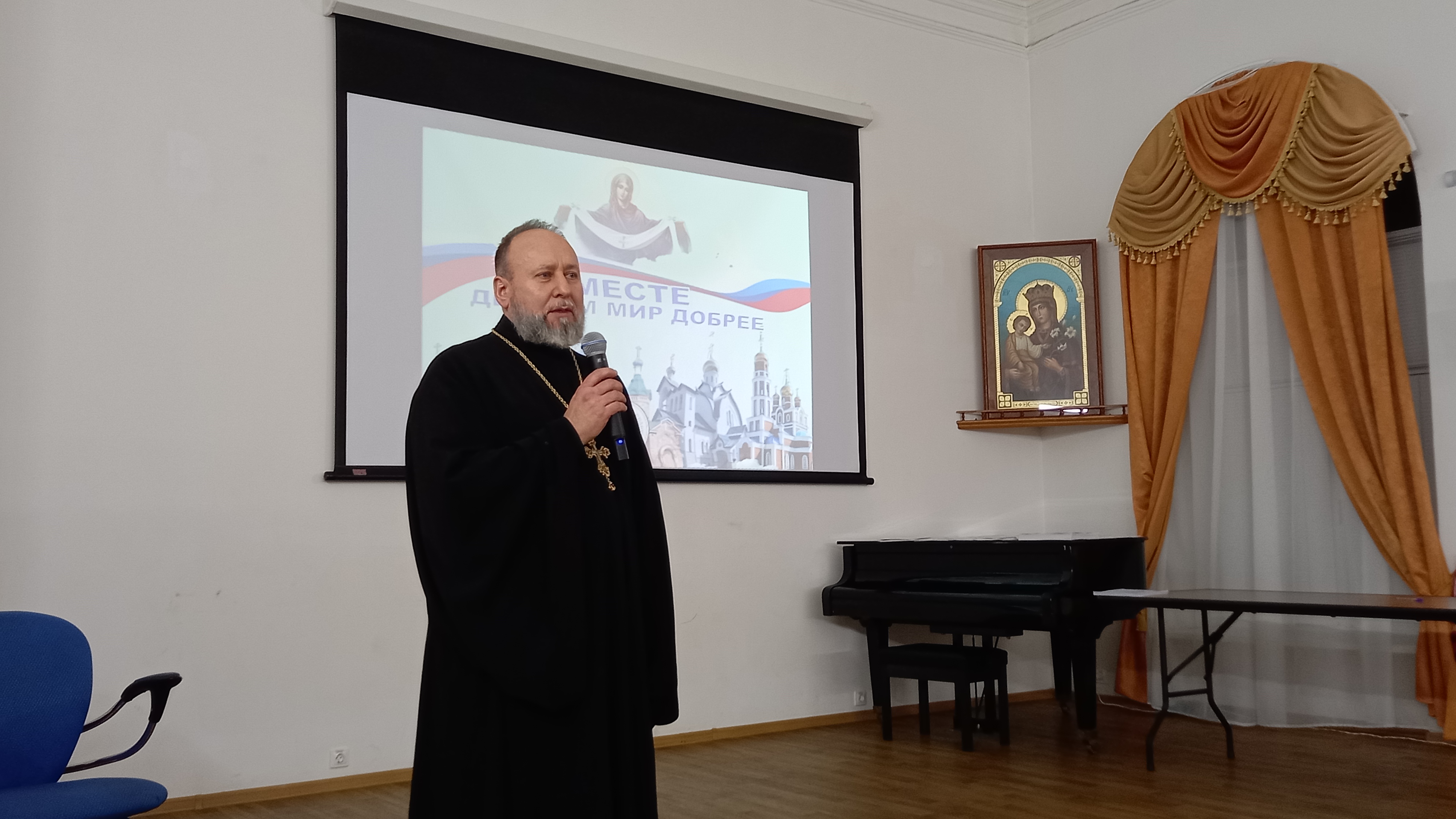 С приветственным словом к присутствующим обратился протоиерей Вадим Сороколетов. Он выразил благодарность всем, кто посвящает своё время и усилия добровольному служению нуждающимся в помощи людям.