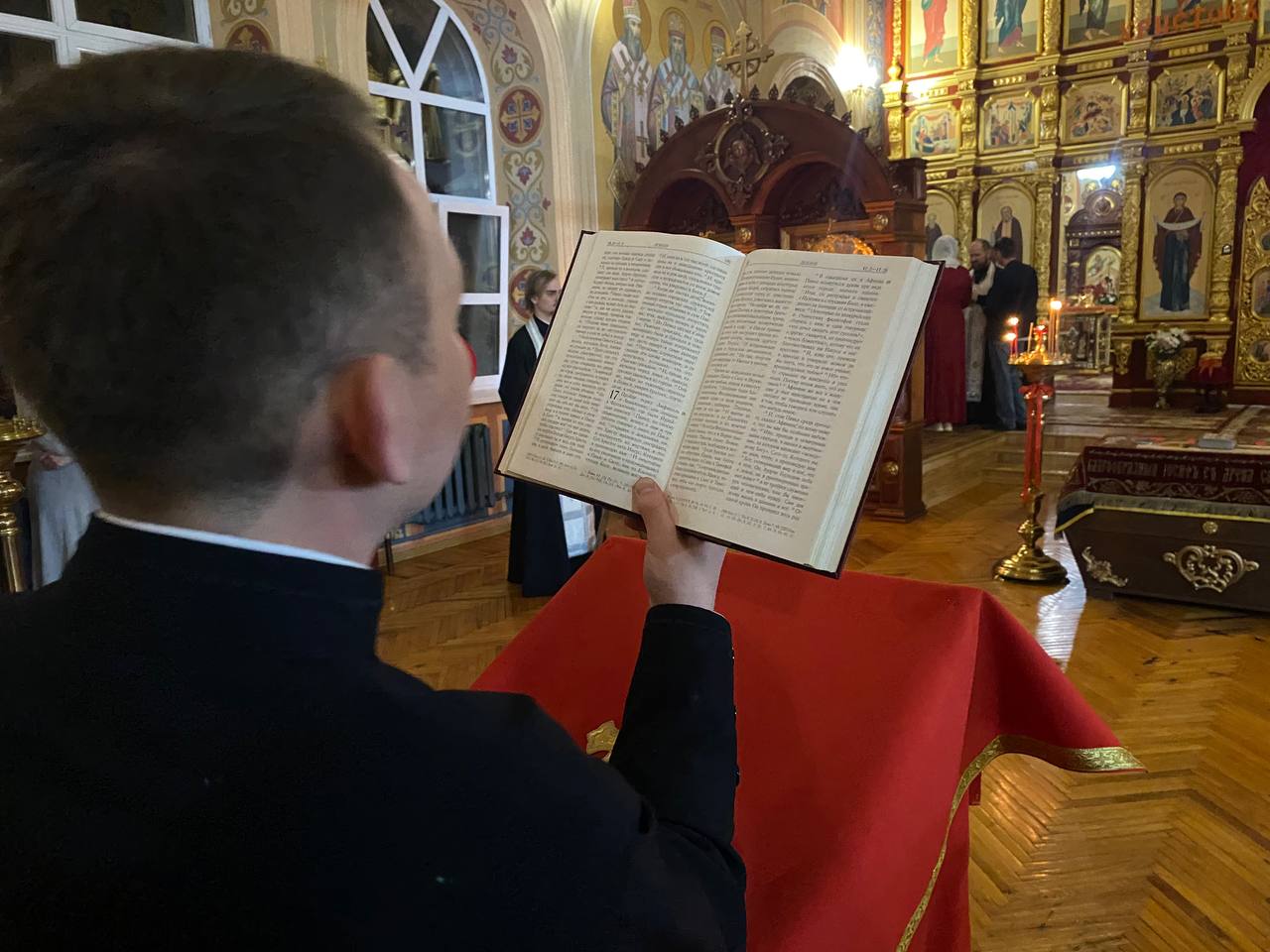 По запричастном стихе студент 2 курса бакалавриата Макарий Лебедь прочитал пасхальное послание митрополита Оренбургского и Саракташского Петра.