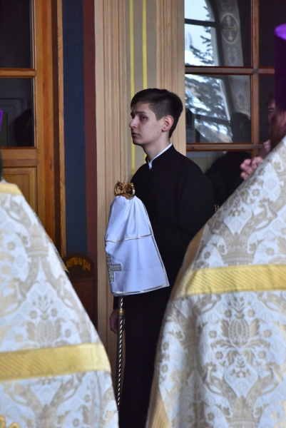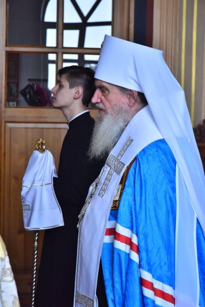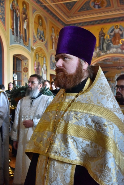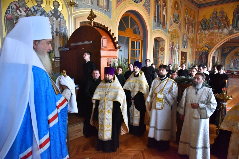 Его Высокопреосвященству сослужили ректор иерей Пётр Панов, проректор по учебной работе иерей Алексий Колыванов, заведующий отделением заочного обучения и дополнительного образования иерей Сергий Мячин, помощники проректора по воспитательной работе иерей Илия Пилипенко и диакон Виктор Довмат, студент 2 курса бакалавриата диакон Павел Парастаев.