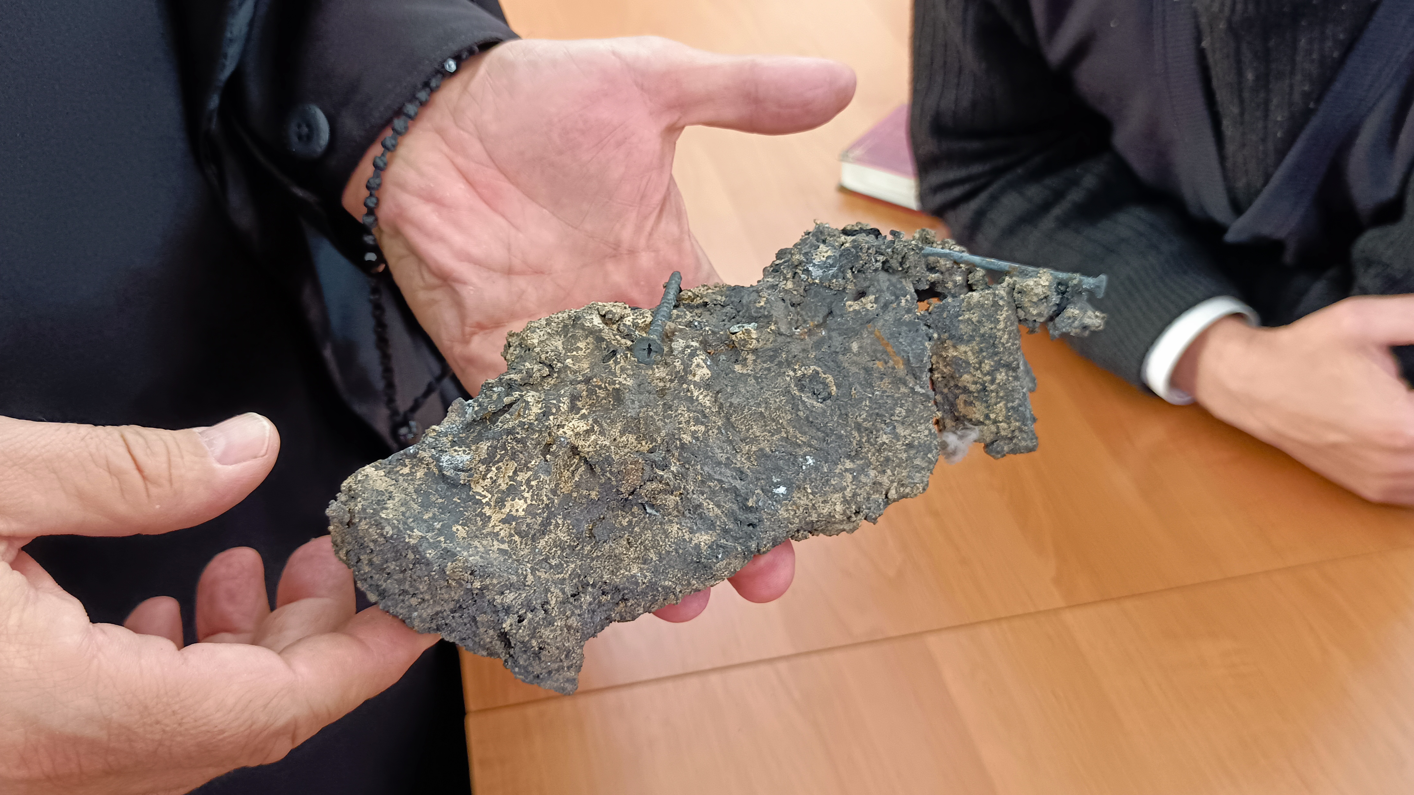 В конце встречи отец Варнава продемонстрировал студентам обгоревшую часть колокола и замок с разрушенного, но действующего монастыря, находящегося на линии боевого соприкосновения.