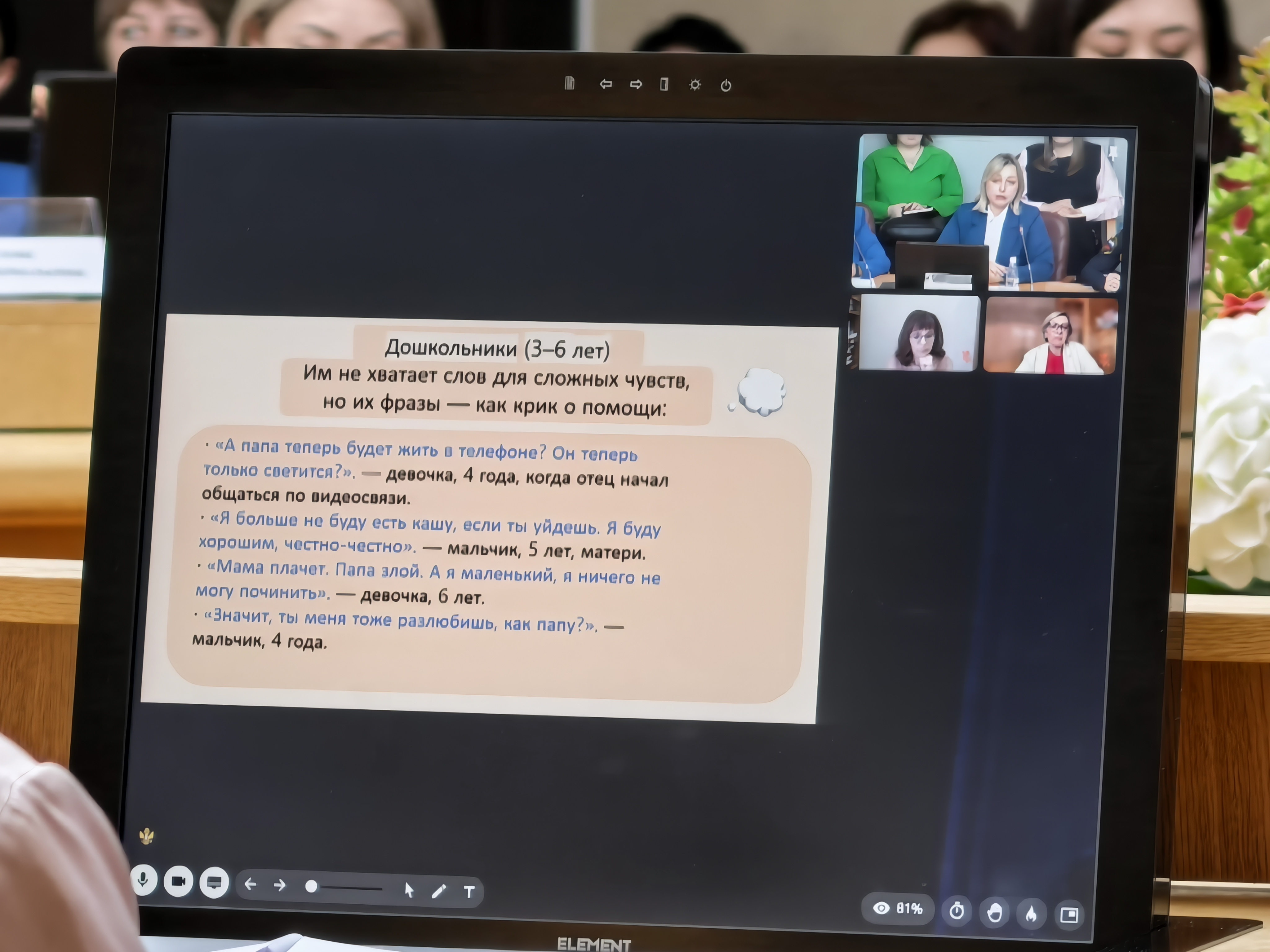 В начале работы А.В. Линькова зачитала приветственное слово Уполномоченного по правам ребёнка Российской Федерации М.А. Львовой-Беловой.