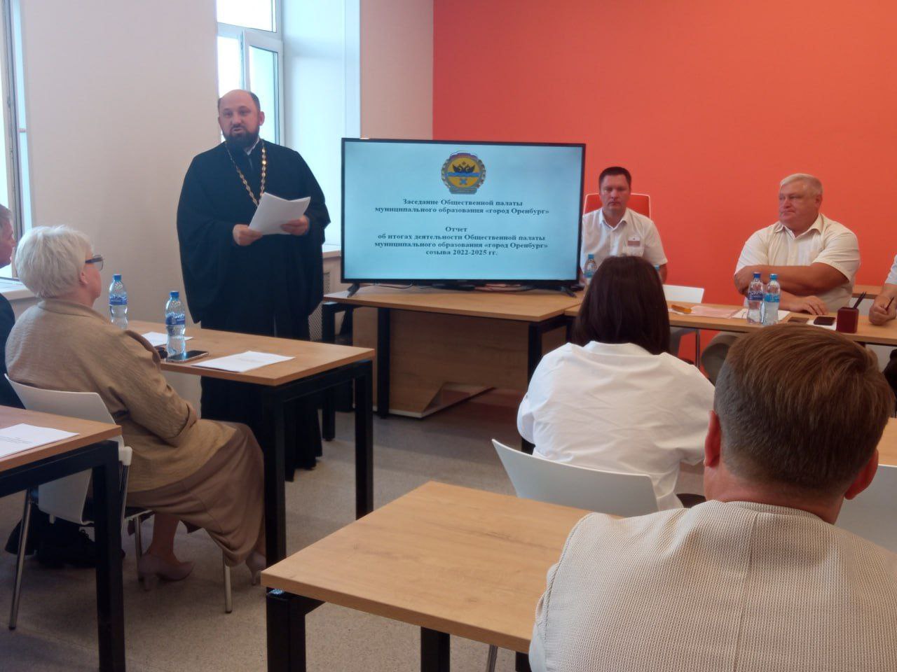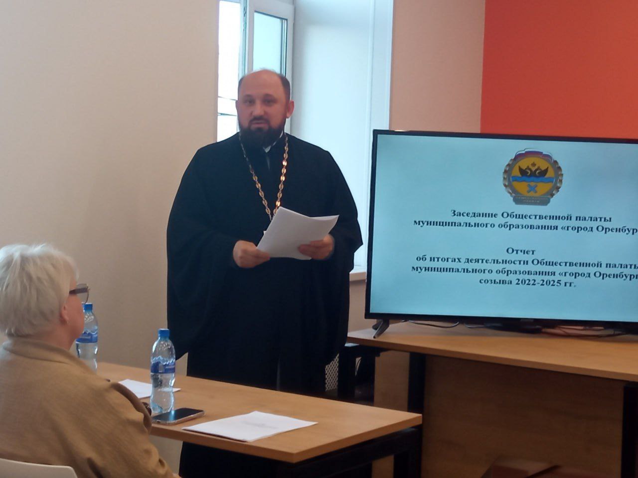 В ходе заседания были заслушаны отчеты председателей комиссий общественной палаты. Ректор Оренбургской духовной семинарии священник Петр Панов представил отчет о работе Комиссии по развитию гражданского общества и связям с общественностью. В частности, он отметил, что в повестке работы Комиссии были вопросы реализации духовно-нравственного воспитания в образовательных организациях, проведение работы по патриотическому воспитанию молодежи, вопросы о взаимодействии национальных диаспор и обществ на территории города Оренбурга.