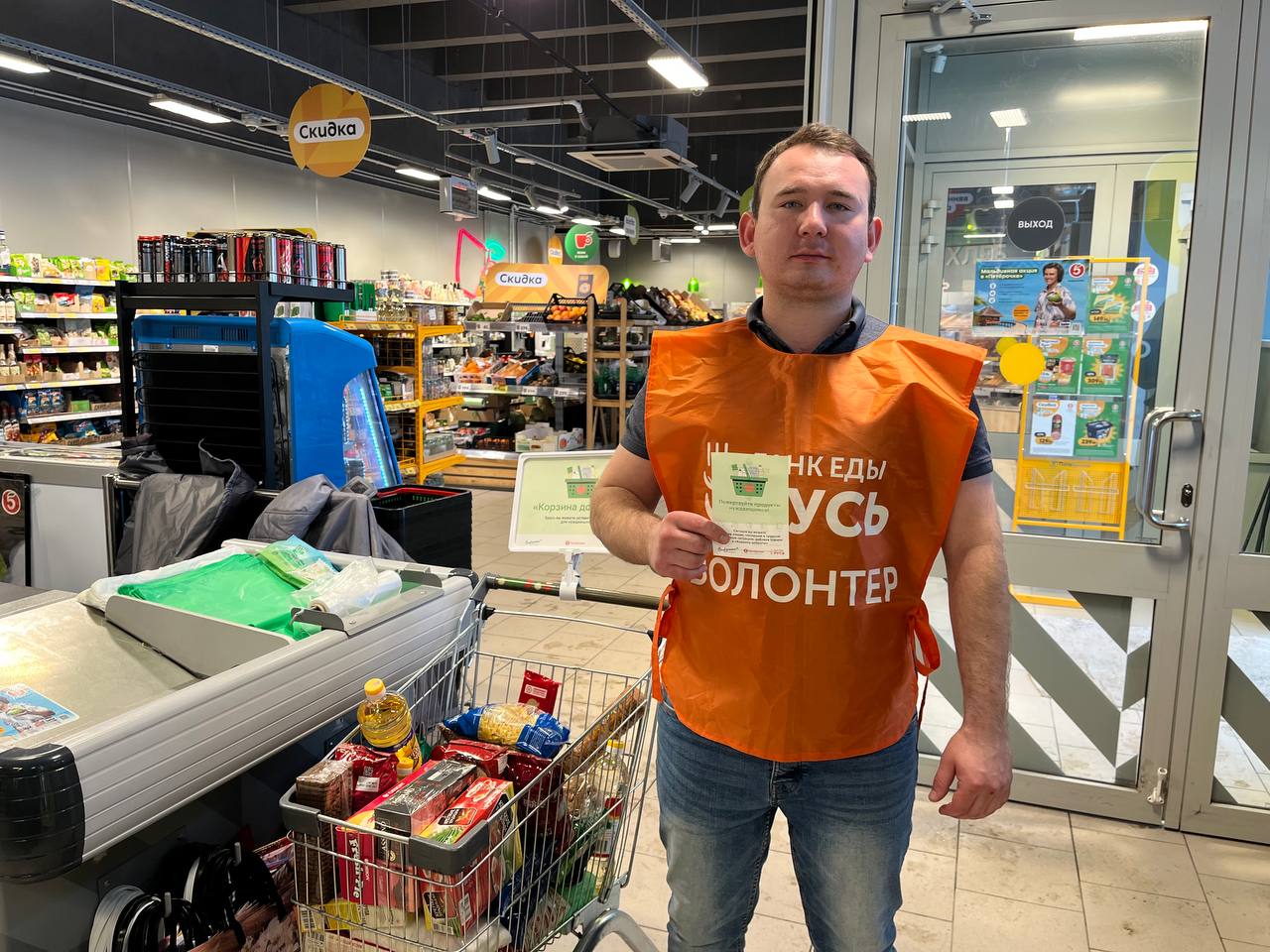 Выступая в качестве добровольцев, участники акции информировали покупателей гипермаркета «Пятерочка» (ул. Яицкая, 1) о целях проведения акции и приглашали принять участие в ней. Многие посетители магазина охотно откликнулись на призыв и пожертвовали на нужды малоимущих сограждан необходимые продукты питания.