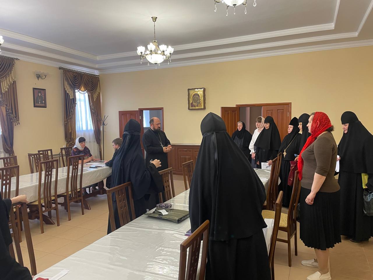 30 мая 2025 года состоялся зачет по дисциплине «Церковнославянский язык» и зачет по дисциплине «Основы Богослужебного Устава и Литургика» для слушателей Курсов базовой подготовки в области богословия для монашествующих Оренбургской митрополии на базе Свято-Тихвинского Богородицкого женского монастыря г. Бузулука.