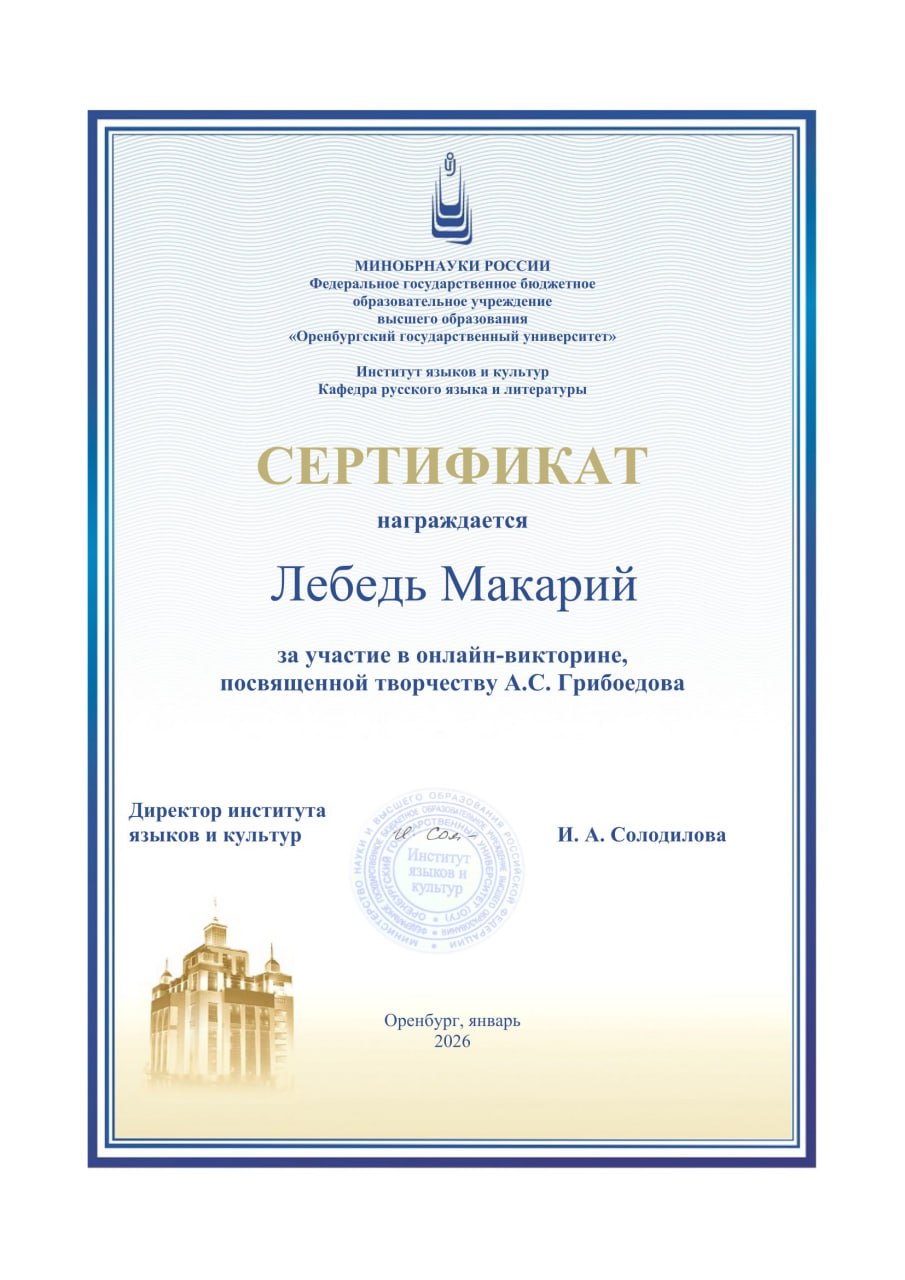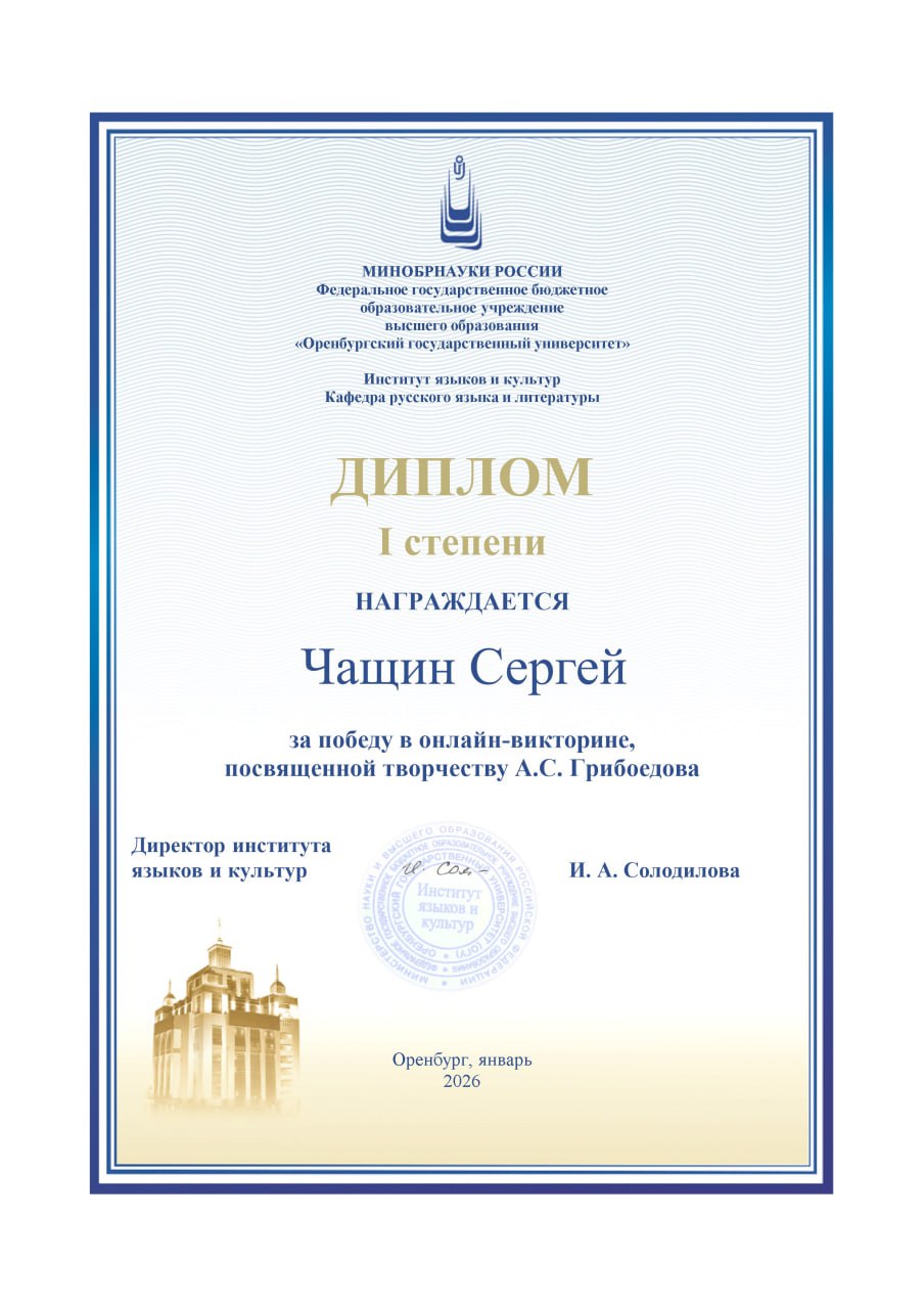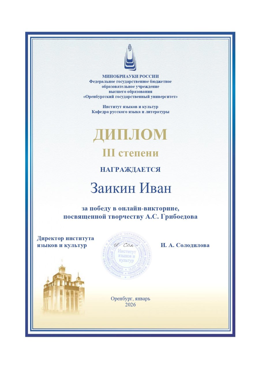 Проведение викторины «Поговорим об Александре Сергеевиче… Грибоедове!» организовано кафедрой русского языка и литературы института языков и культур Оренбургского государственного университета.