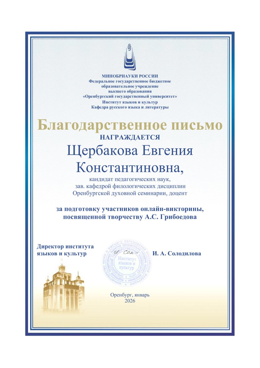 Под руководством заведующего кафедрой филологических дисциплин Оренбургской духовной семинарии Е.К. Щербаковой участие в викторине приняли обучающиеся бакалавриата очной и заочной форме обучения, а также студенты подготовительного курса магистратуры.