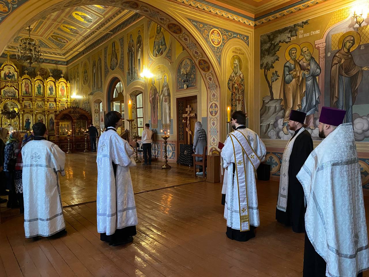 Вечером отец Петр совершил всенощное бдение. Вместе с ректором службы великого повечерия, литии и великой утрени совершили проректор по учебной работе иерей Алексий Колыванов, диаконы Виктор Довмат и Павел Парастаев.