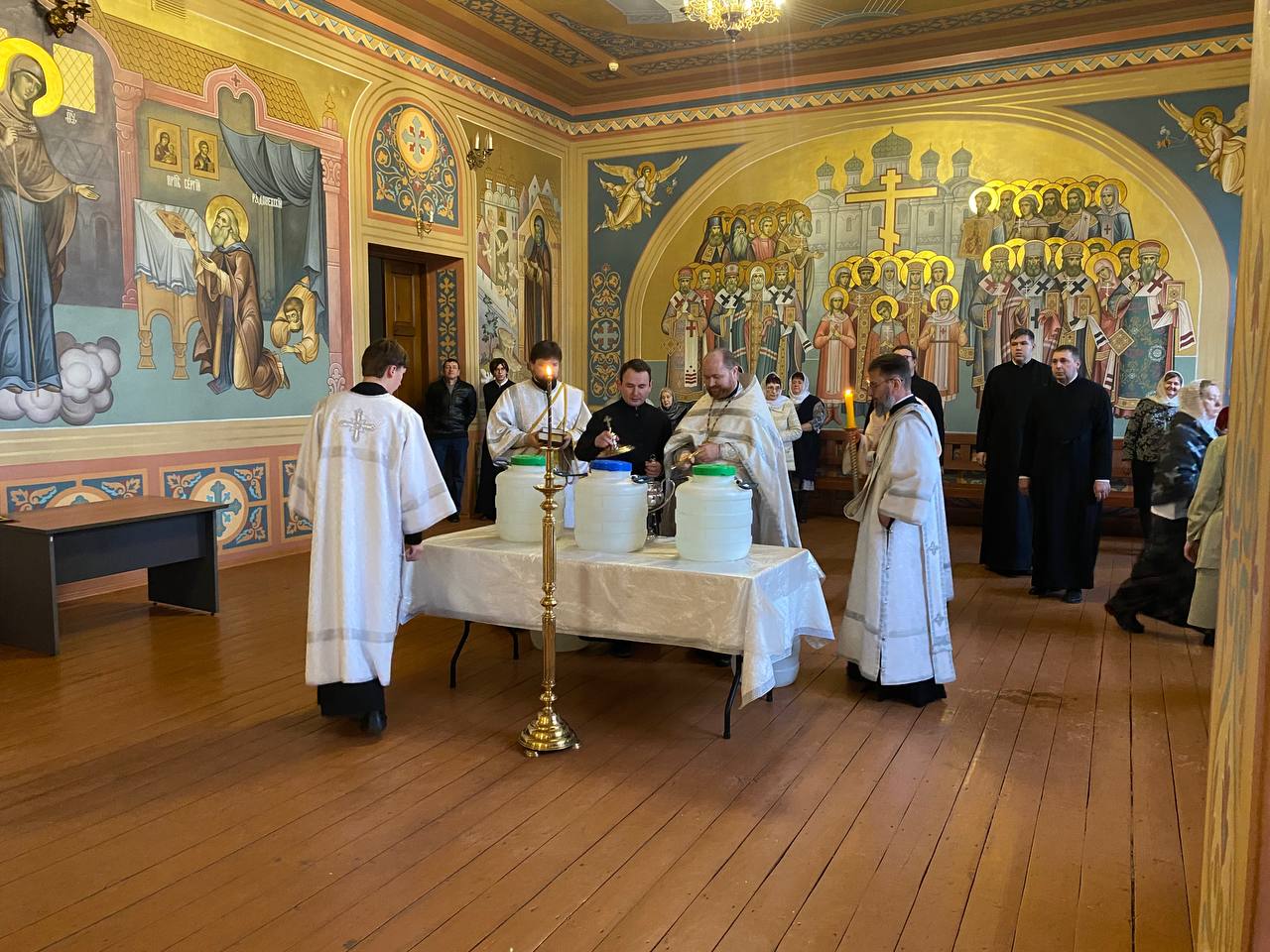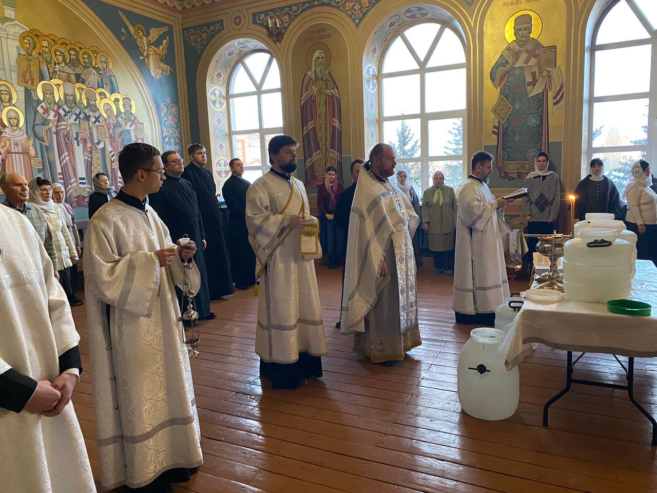 После Божественной литургии в притворе храма отец Алексий совершил чинопоследование великого освящения воды и окропил всех присутствовавших агиасмой.