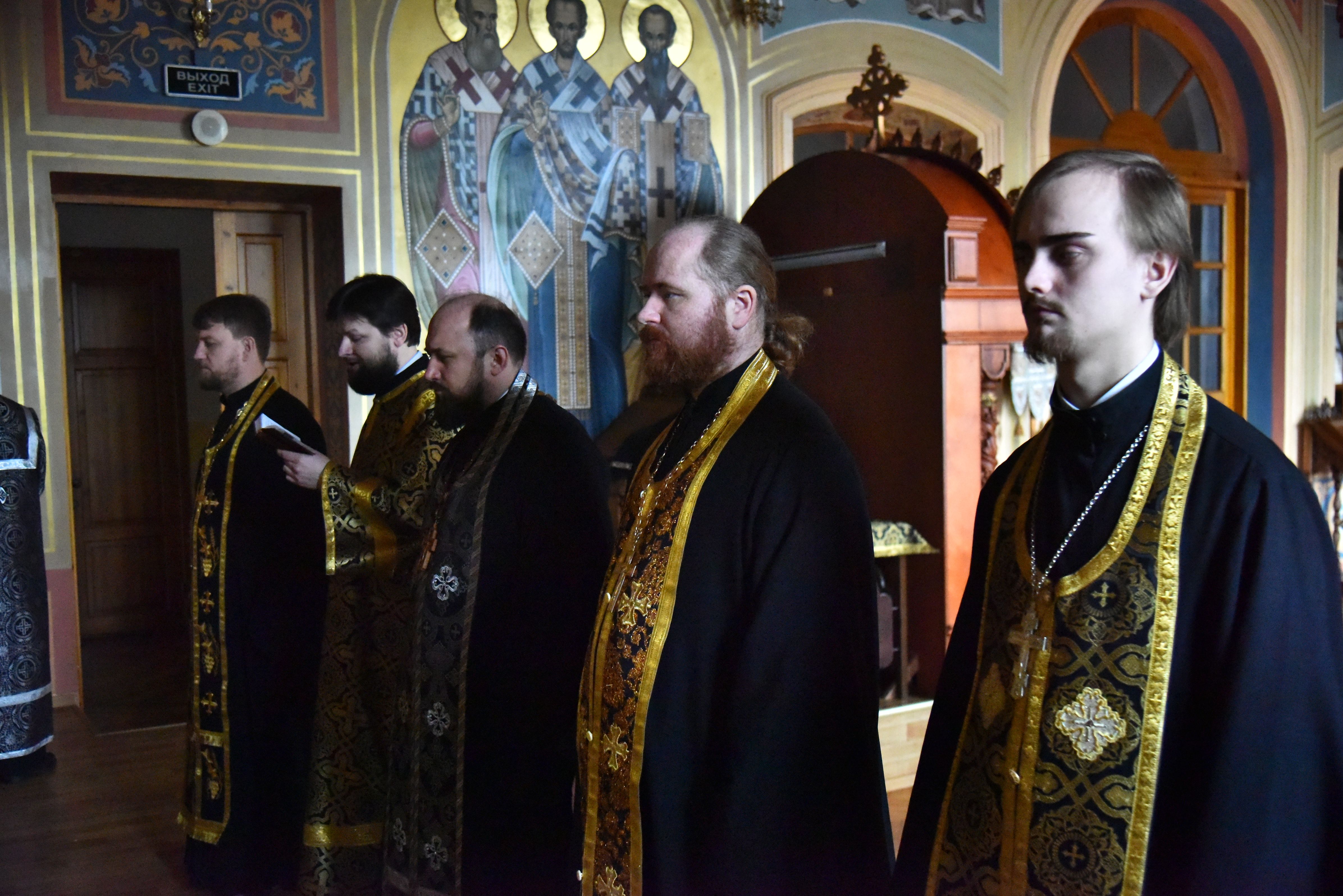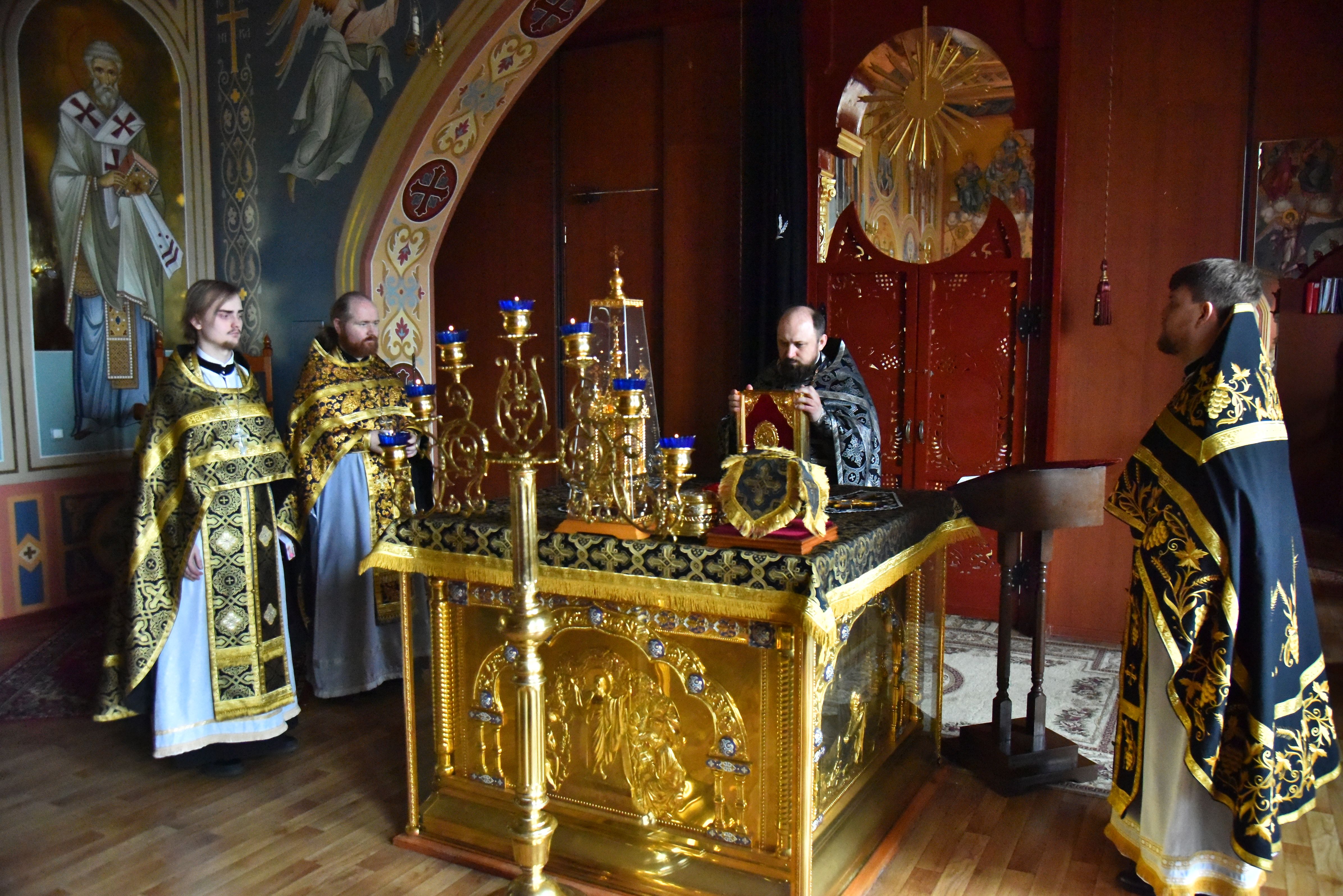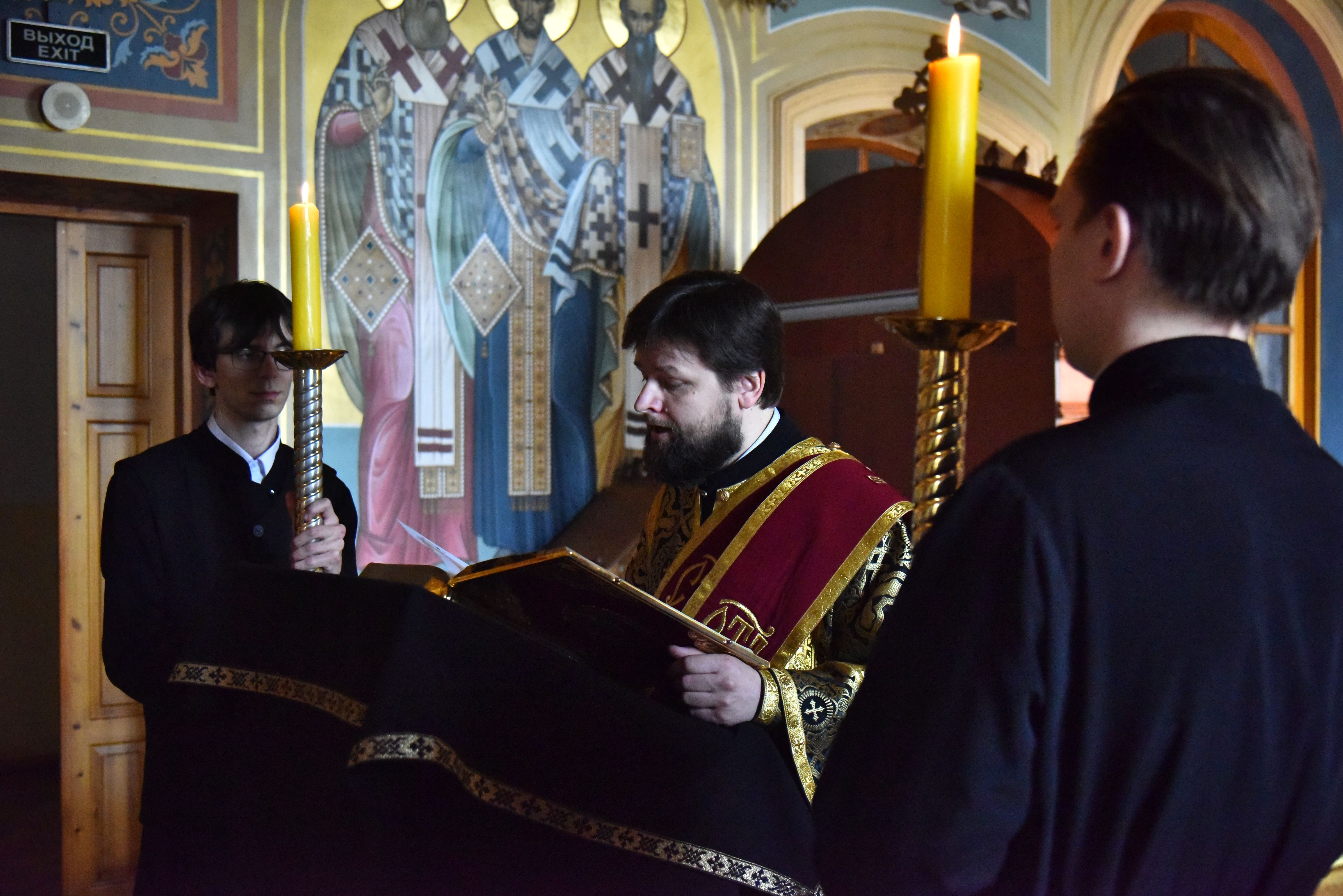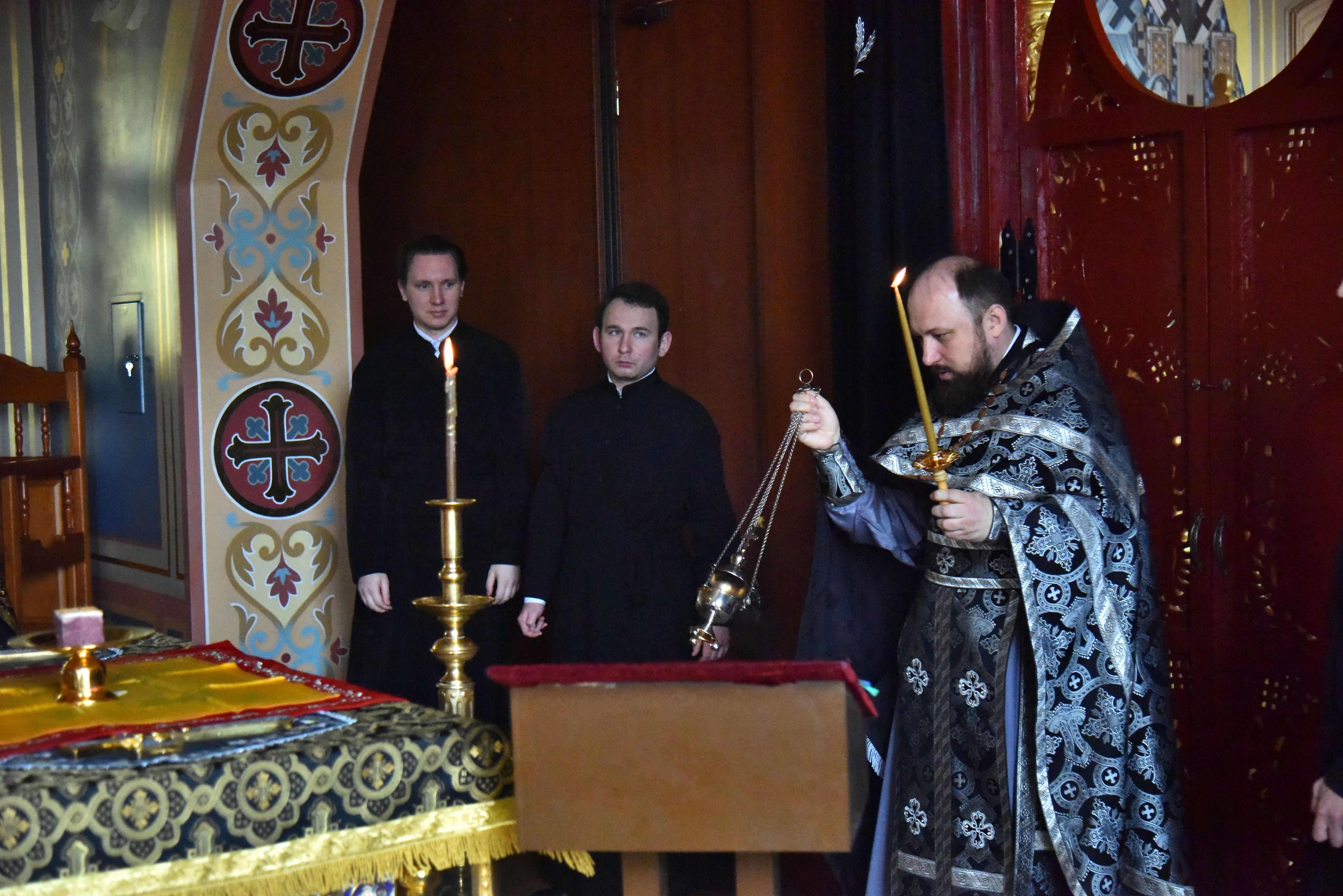 Совершение Литургии Преждеосвященных Даров возглавил ректор Оренбургской духовной семинарии иерей Петр Панов в сослужении проректора по учебной работе – благочинного домового храма иерея Алексия Колыванова, иерея Антония Гусева, студента 4 курса бакалавриата иерея Михаила Поповича и студента пропедевтического курса диакона Виктора Довмата.