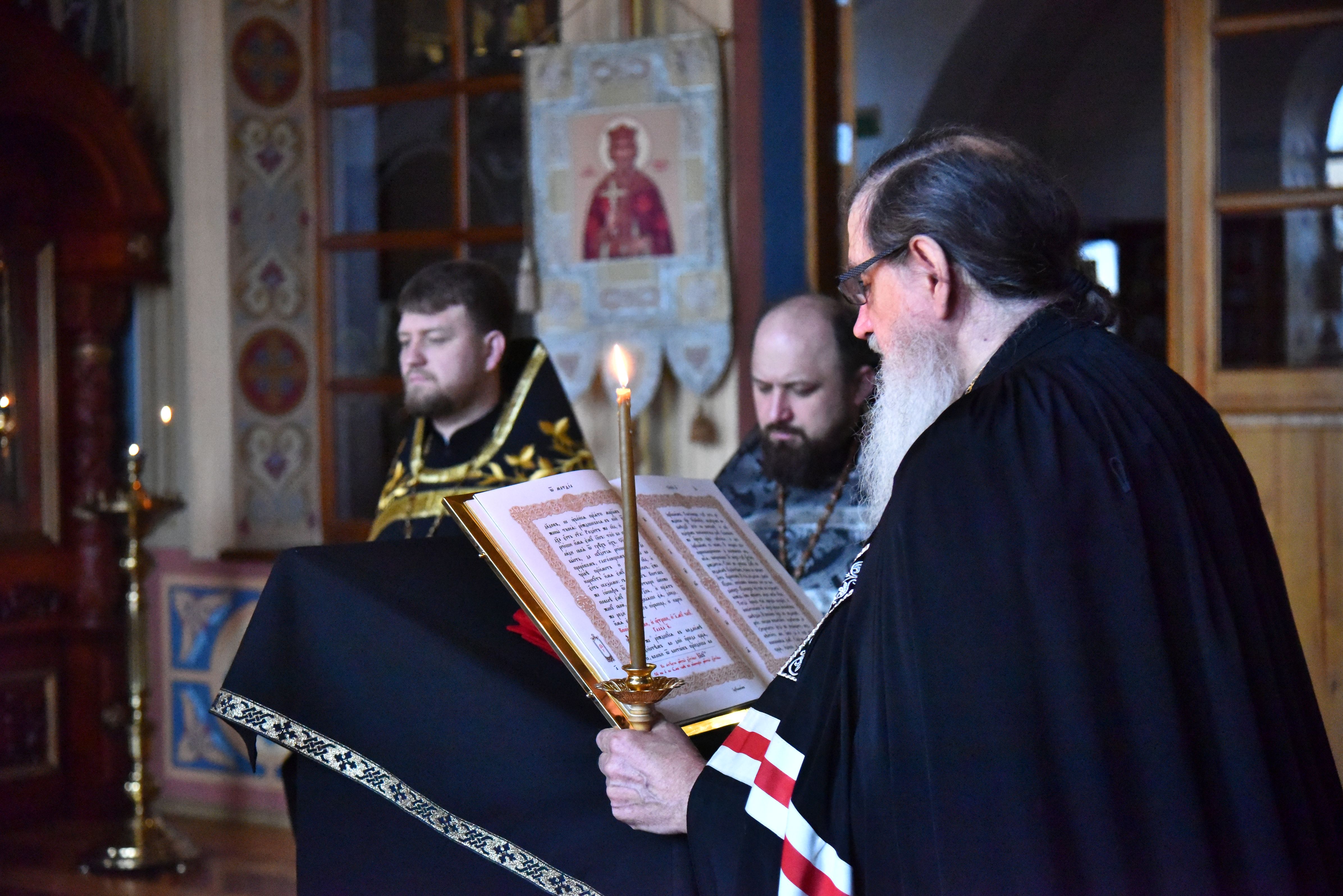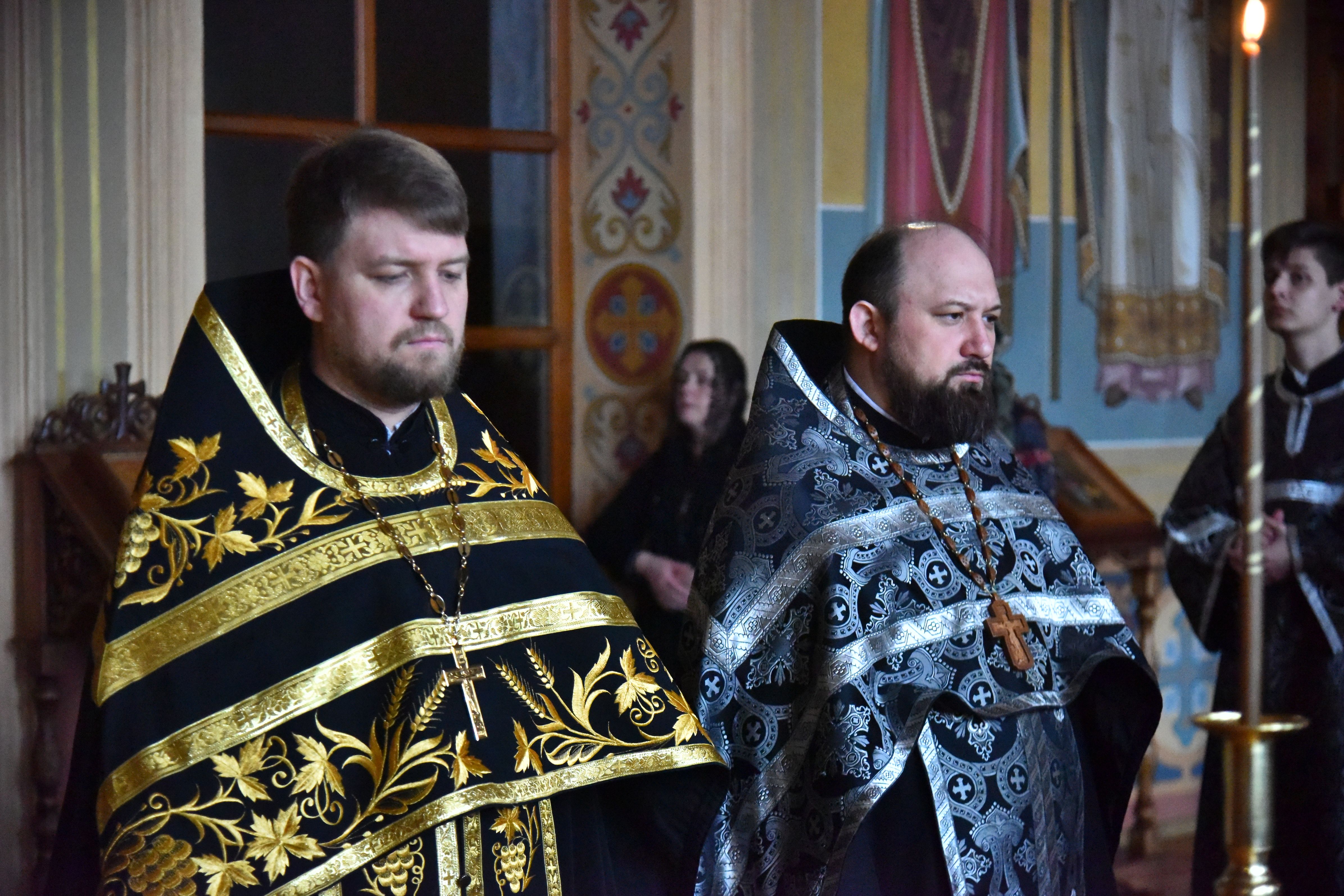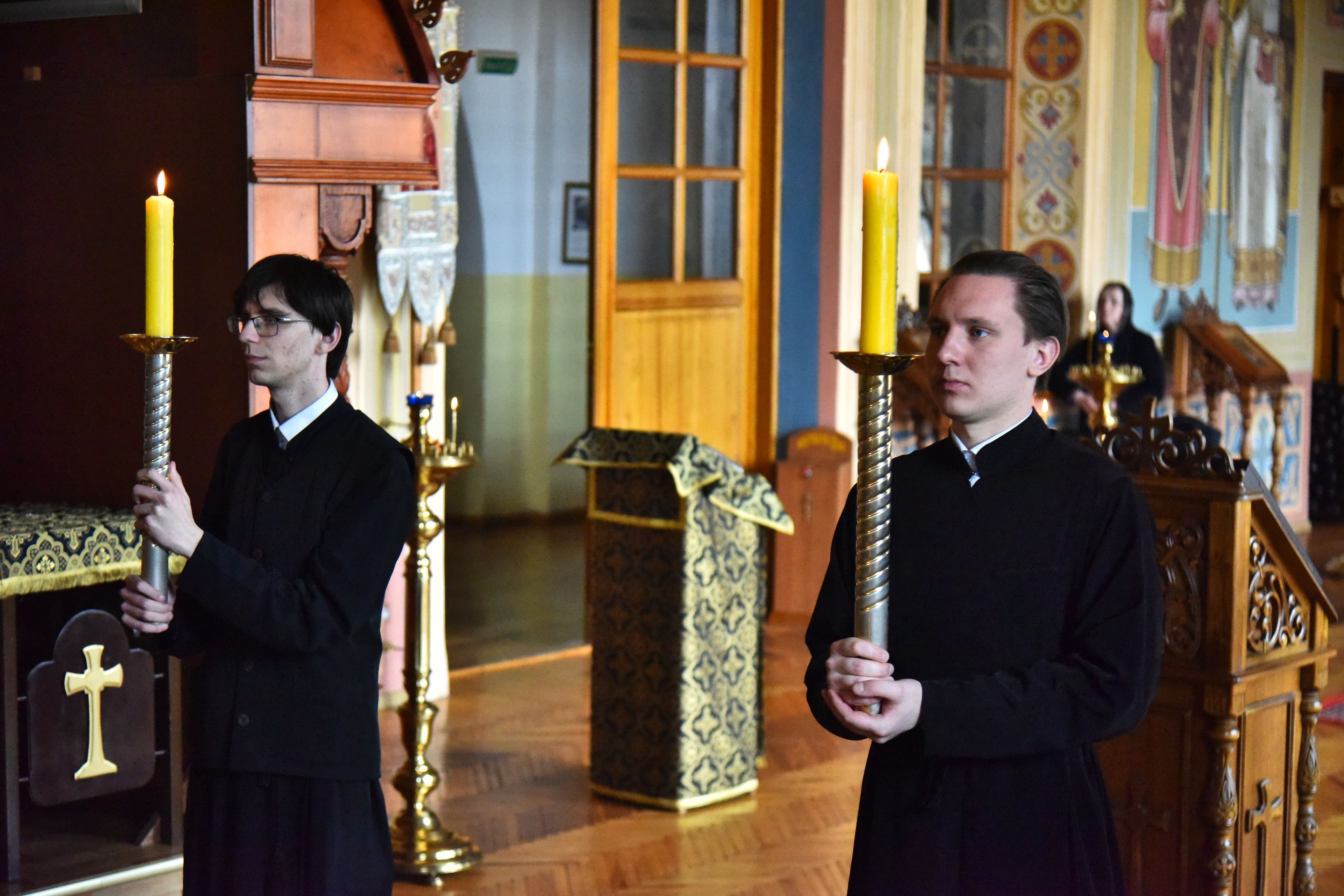 Совершение Литургии Преждеосвященных Даров возглавил ректор Оренбургской духовной семинарии иерей Петр Панов в сослужении проректора по учебной работе – благочинного домового храма иерея Алексия Колыванова, иерея Антония Гусева, студента 4 курса бакалавриата иерея Михаила Поповича и студента пропедевтического курса диакона Виктора Довмата.