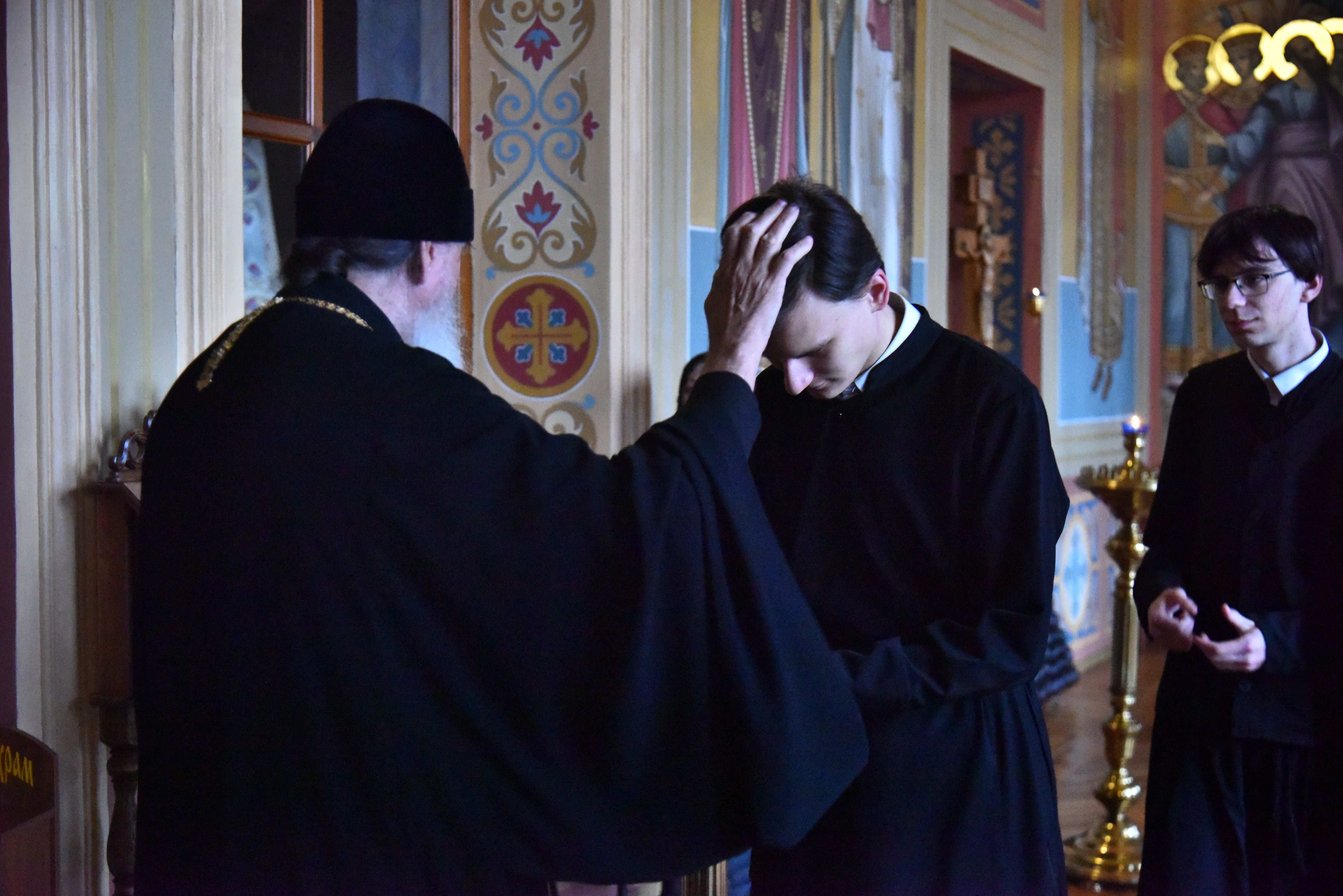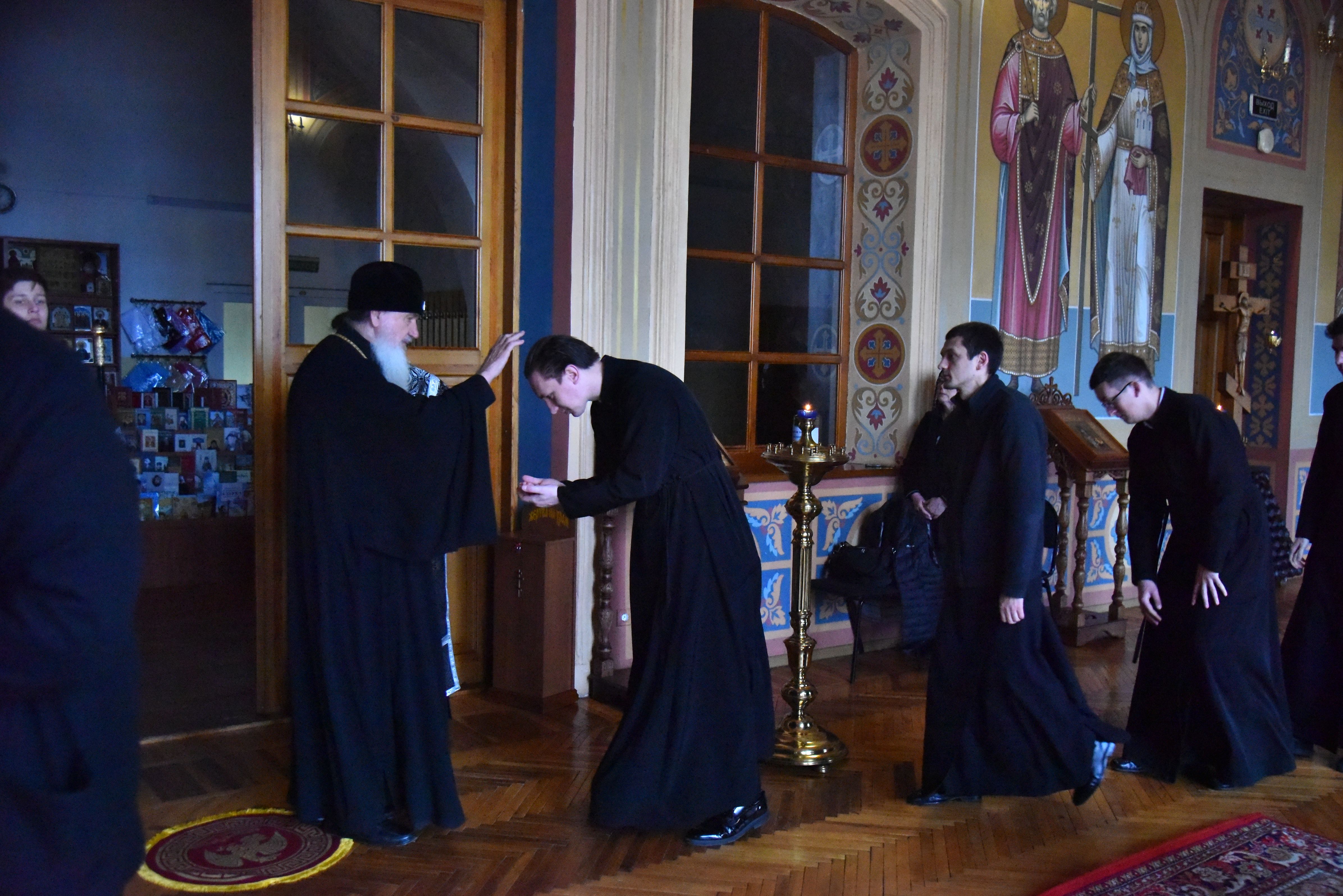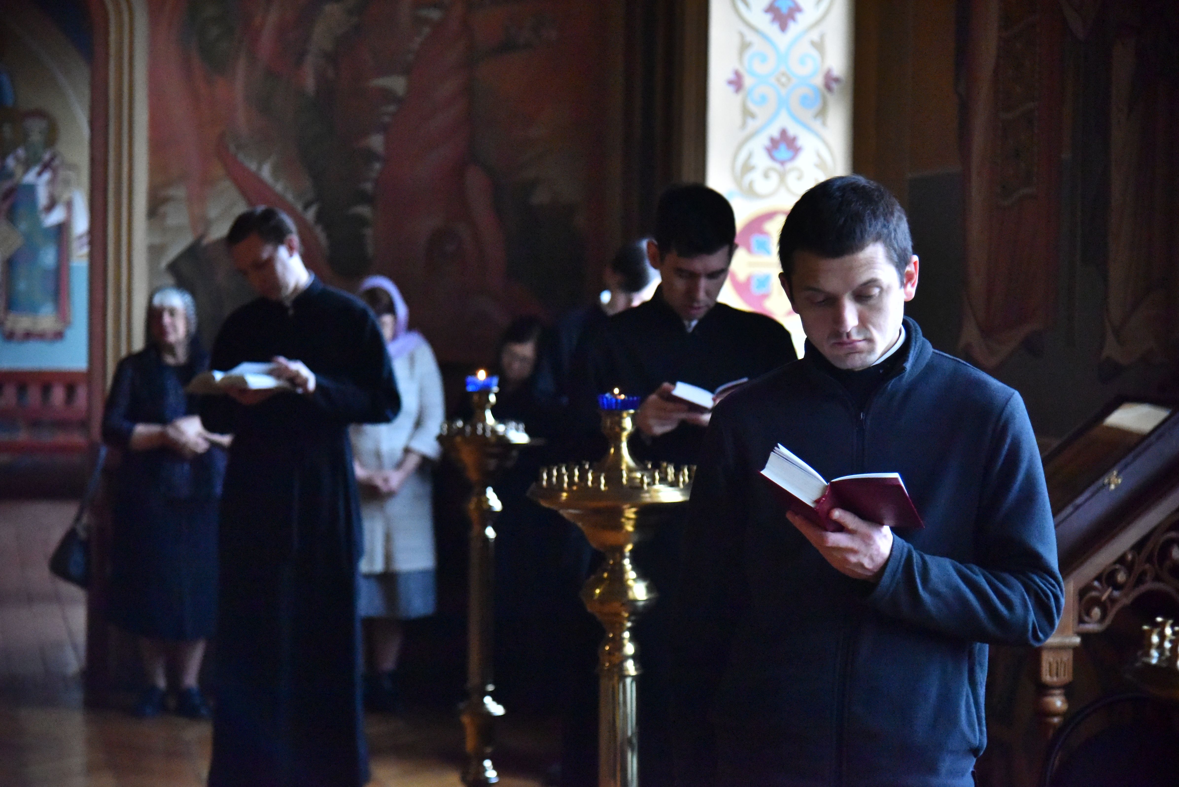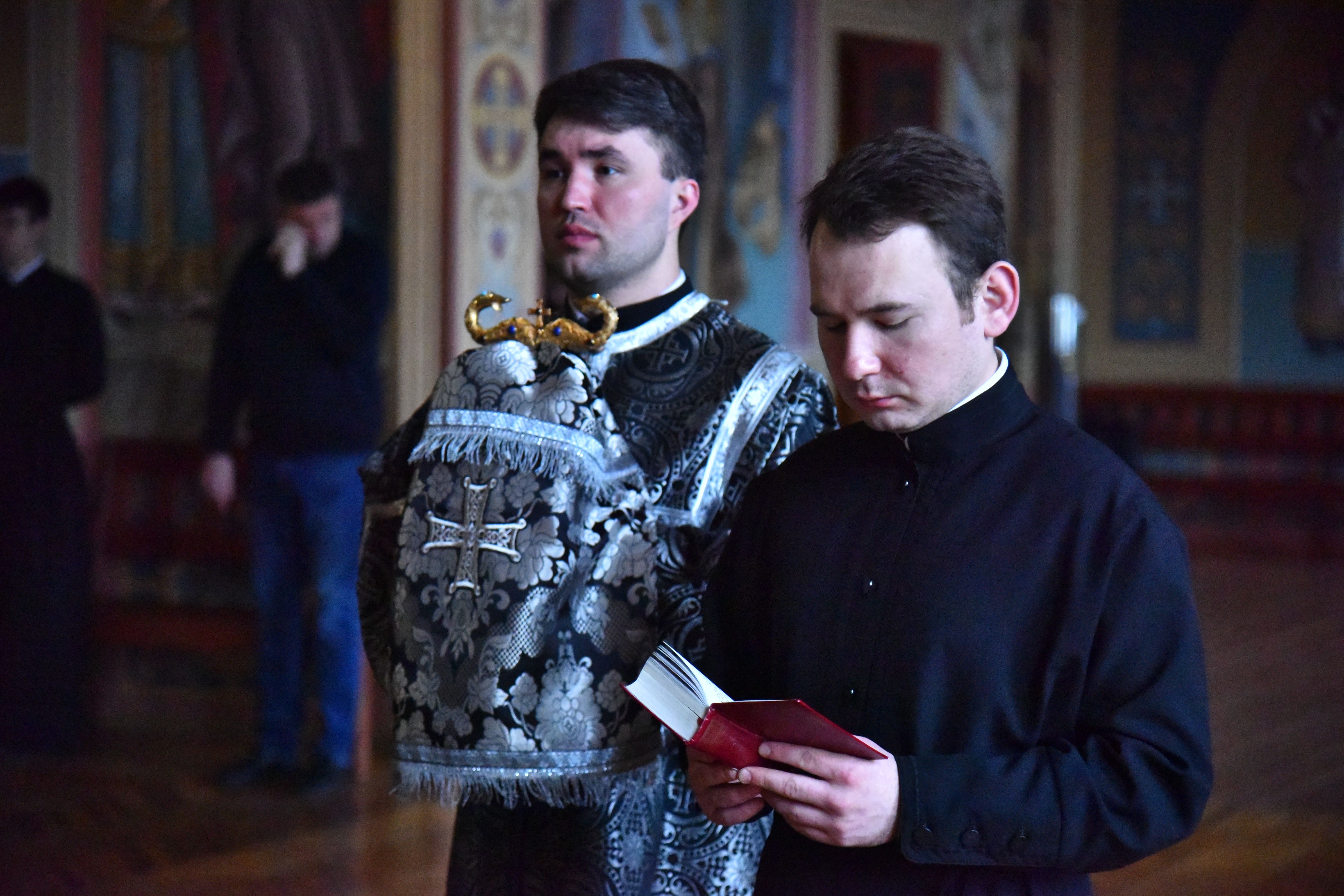 Совершение Литургии Преждеосвященных Даров возглавил ректор Оренбургской духовной семинарии иерей Петр Панов в сослужении проректора по учебной работе – благочинного домового храма иерея Алексия Колыванова, иерея Антония Гусева, студента 4 курса бакалавриата иерея Михаила Поповича и студента пропедевтического курса диакона Виктора Довмата.
