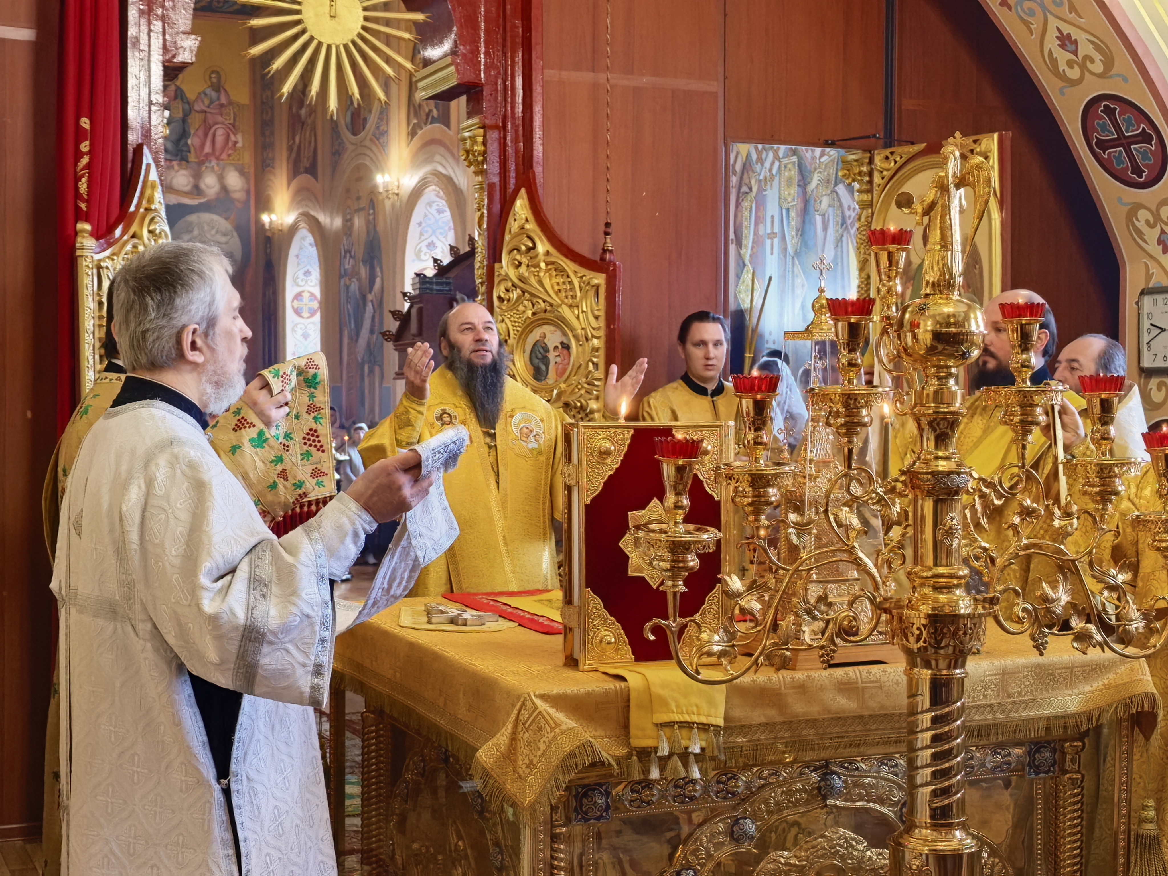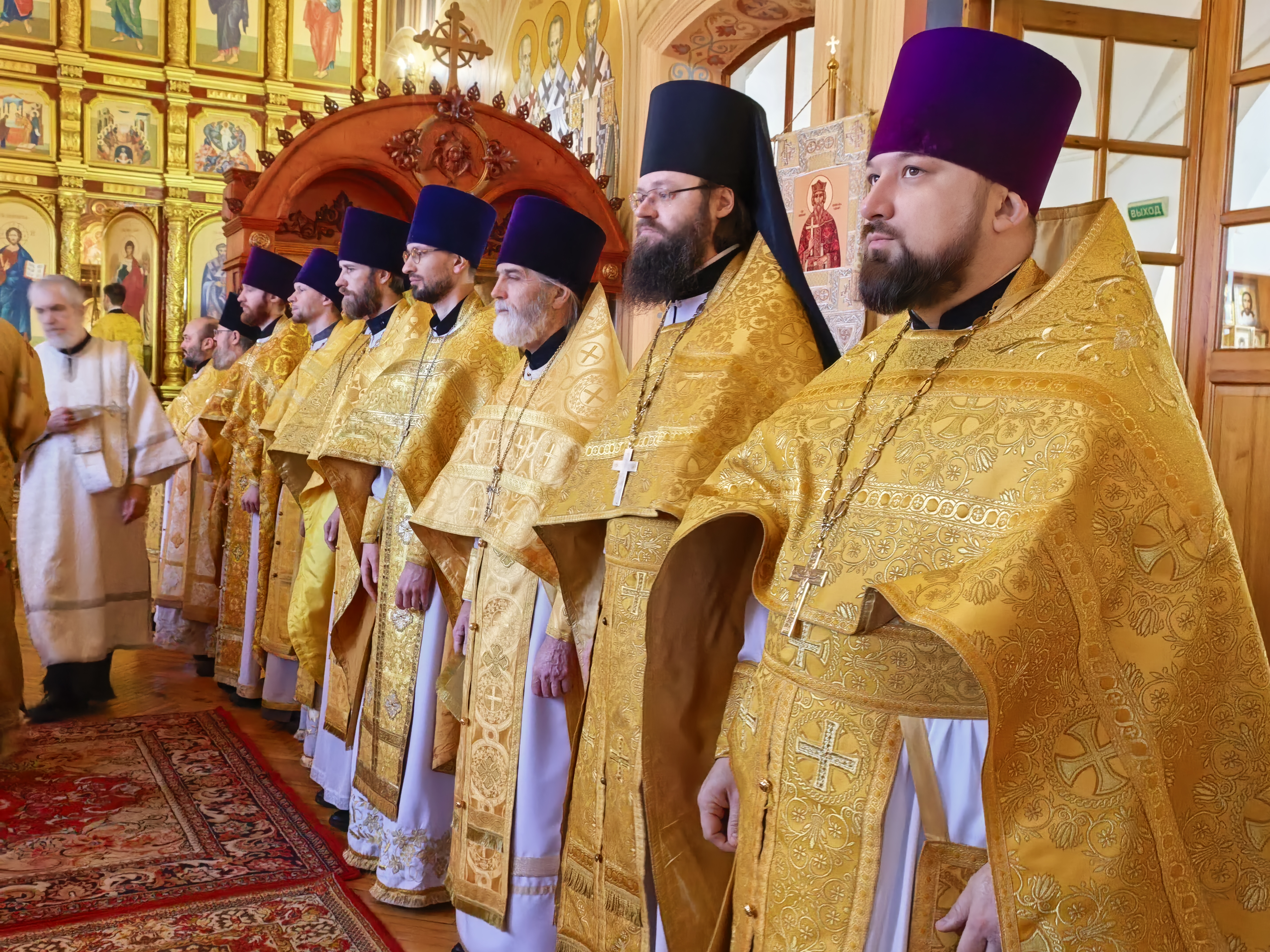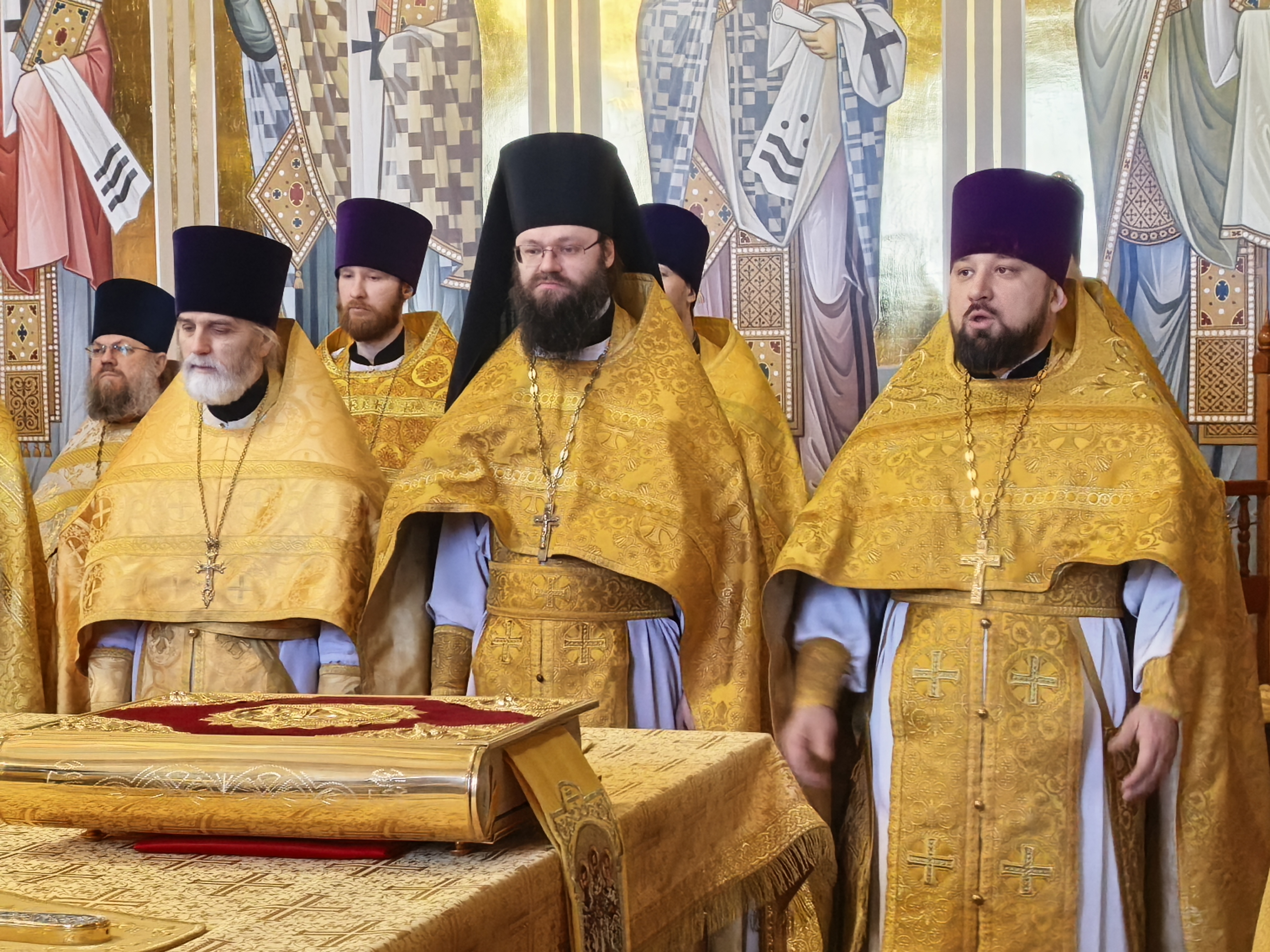 Богослужение возглавил Преосвященнейший Ириней, епископ Орский и Гайский. Его Преосвященству сослужили ректор Оренбургской духовной семинарии иерей Пётр Панов, протоиерей Александр Куцов, ректор Николо-Угрешской духовной семинарии иеромонах Лука (Пронских), игумен Варнава (Соколов), духовник Семинарии протоиерей Геннадий Корниенко, проректор по учебной работе иерей Алексий Колыванов, заведующий отделением заочного обучения и дополнительного образования иерей Сергий Мячин, протоиерей Дионисий Волков, иерей Антоний Федоров, благочинный Казанского и Иоанно-Предтеченкого округов иерей Константин Крымов, иерей Александр Филонов, иерей Андрей Александров, иерей Леонид Кудрячов, иерей Александр Щукин, протоиерей Сергий Ушаков, иерей Вячеслав Зайцев, иерей Василий Савенков, иерей Сергий Чащин, иерей Илия Пелипенко, диакон Виктор Довмат, иеродиакон Лаврентий (Муртазов), диакон Владимир Забара и диакон Павел Парастаев.