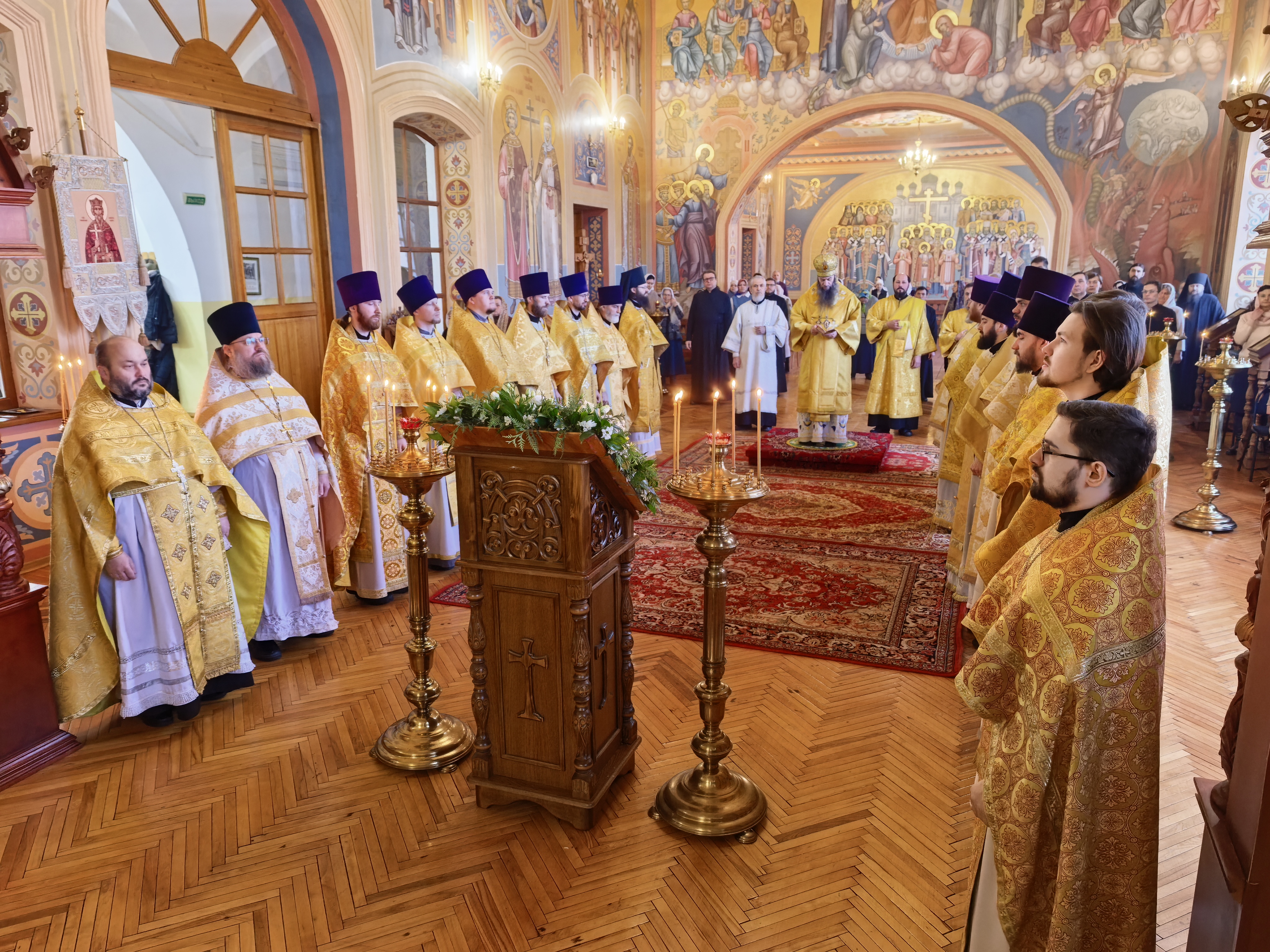 В день престольного праздника в домовом храме Оренбургской духовной семинарии, освященном в честь святых трех вселенских учителей и святителей Василия Великого, Григория Богослова и Иоанна Златоуста , совершена Божественная литургия .