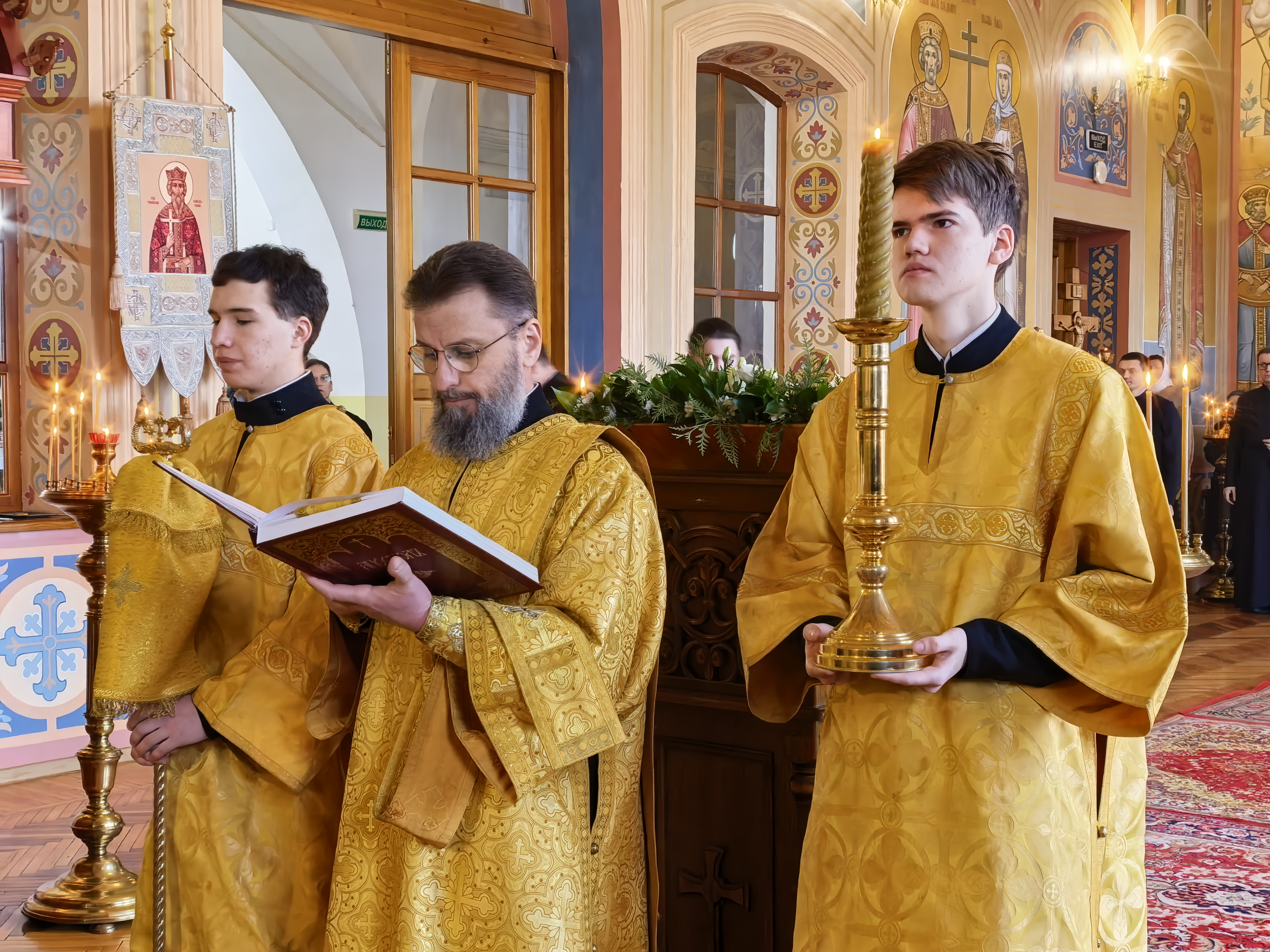 За Богослужением молились представители администрации, профессорско-преподавательского состава, сотрудники, студенты Семинарии, воспитанники воскресной школы «Лествица», прихожане домового храма.