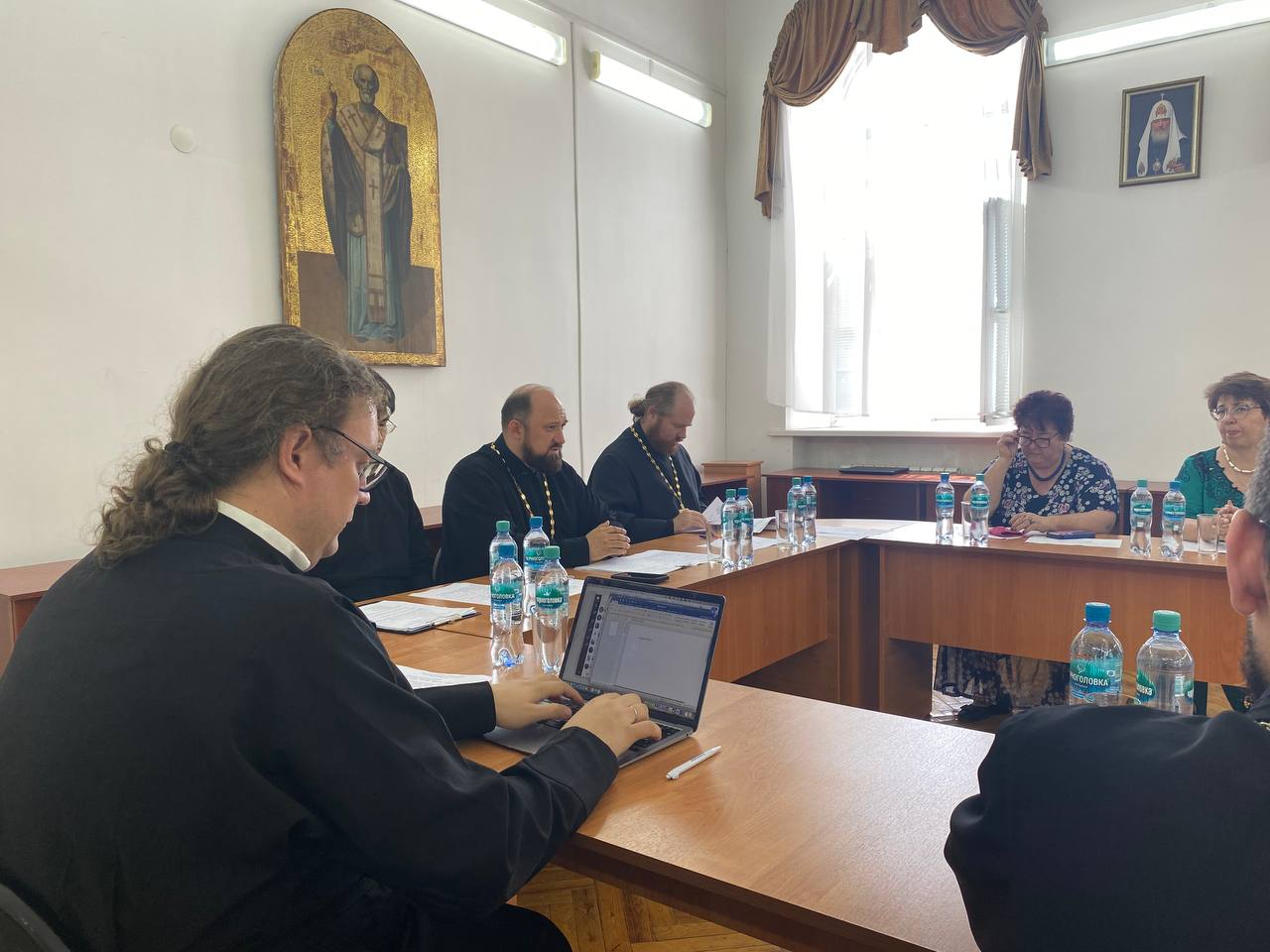 На заседании ректор иерей Петр Панов подвел итоги учебного года, были озвучены основные показатели работы профессорско-преподавательской корпорации и успехи студентов духовной школы, а также намечены планы на предстоящий учебный год.