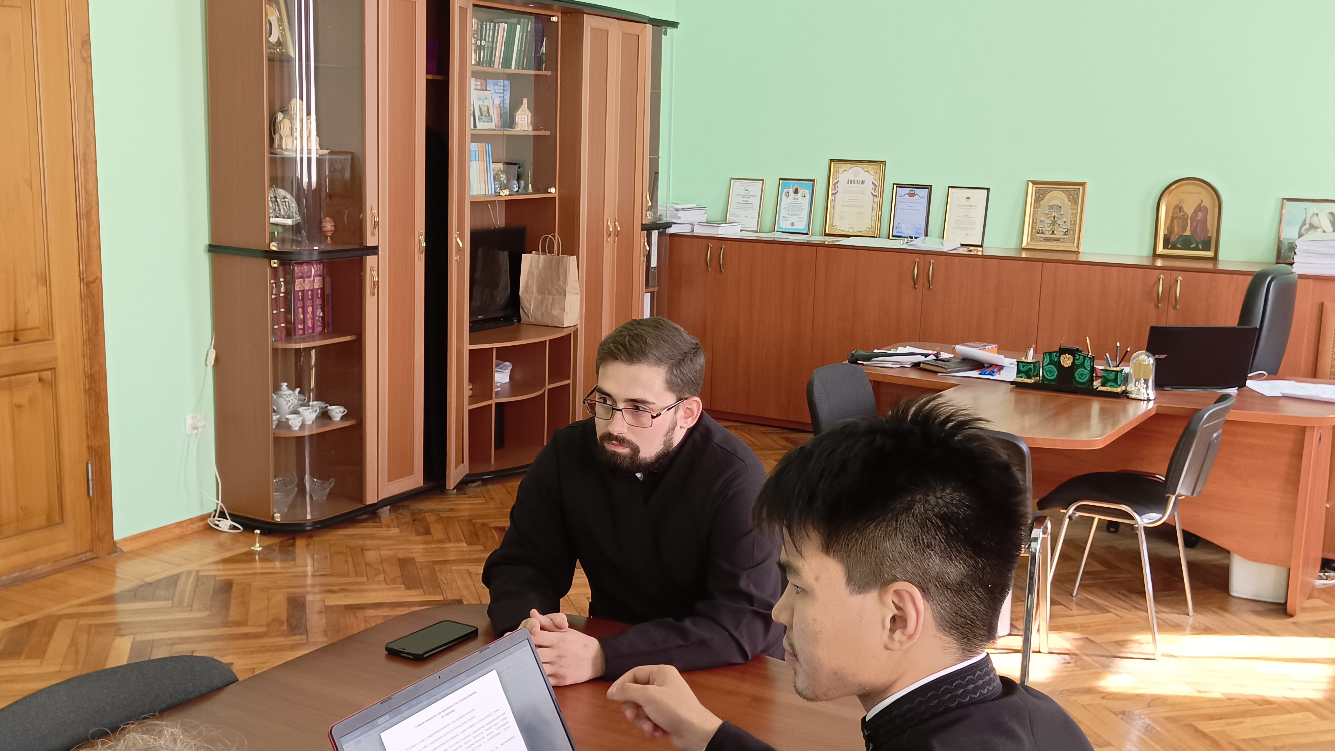 Ставленнический экзамен был проведен для претендента на хиротонию в сан диакона обучающегося 2 курса магистратуры чтеца Илии Викторовича Пелипенко.