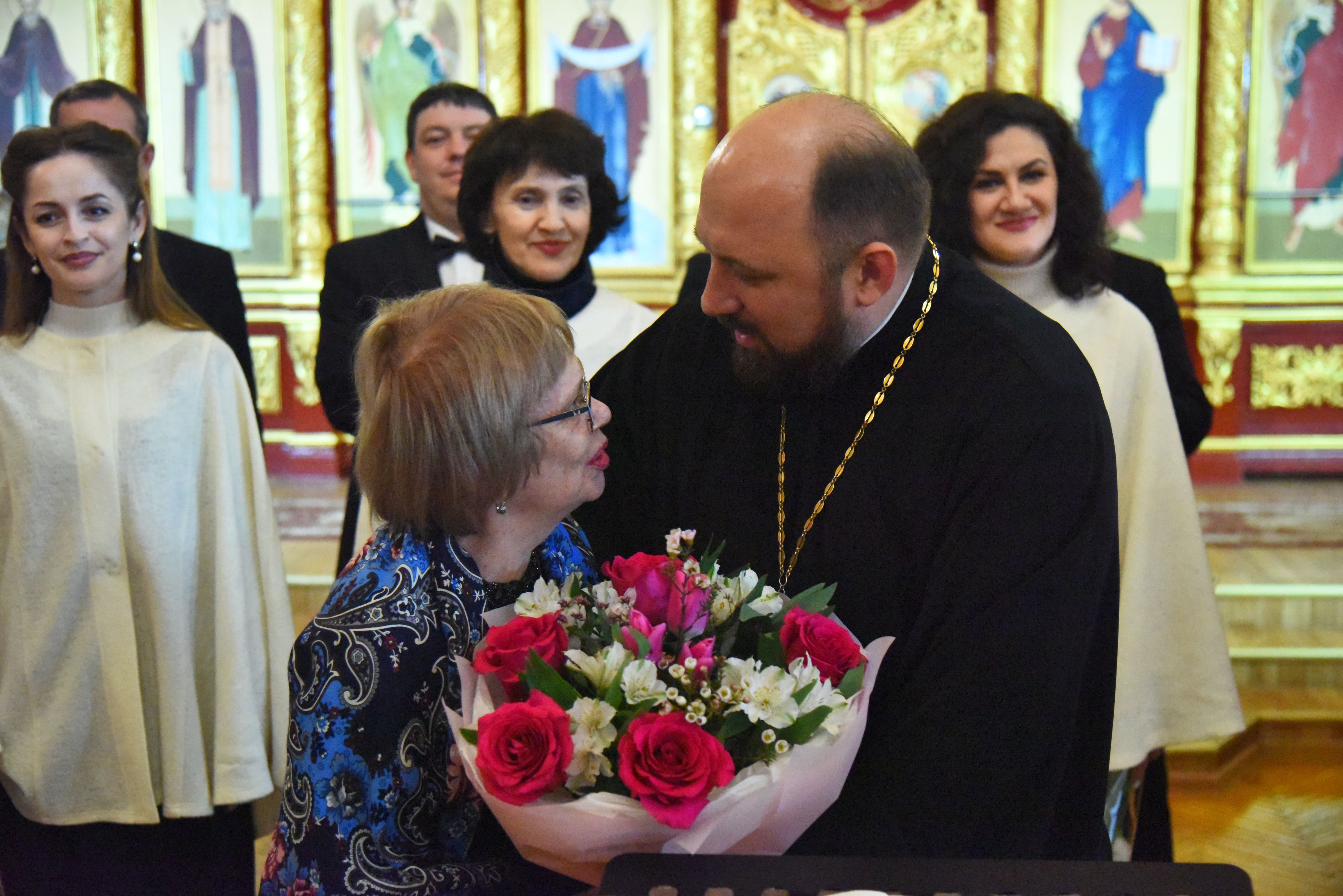 По завершении концерта ректор Оренбургской духовной семинарии иерей Петр Панов выразил благодарность и признательность руководителю и коллективу Оренбургского муниципального камерного хора и преподнес Ольге Станиславовне букет цветов.