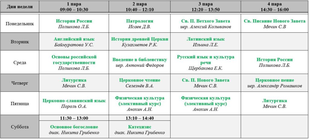 Расписание богослужений